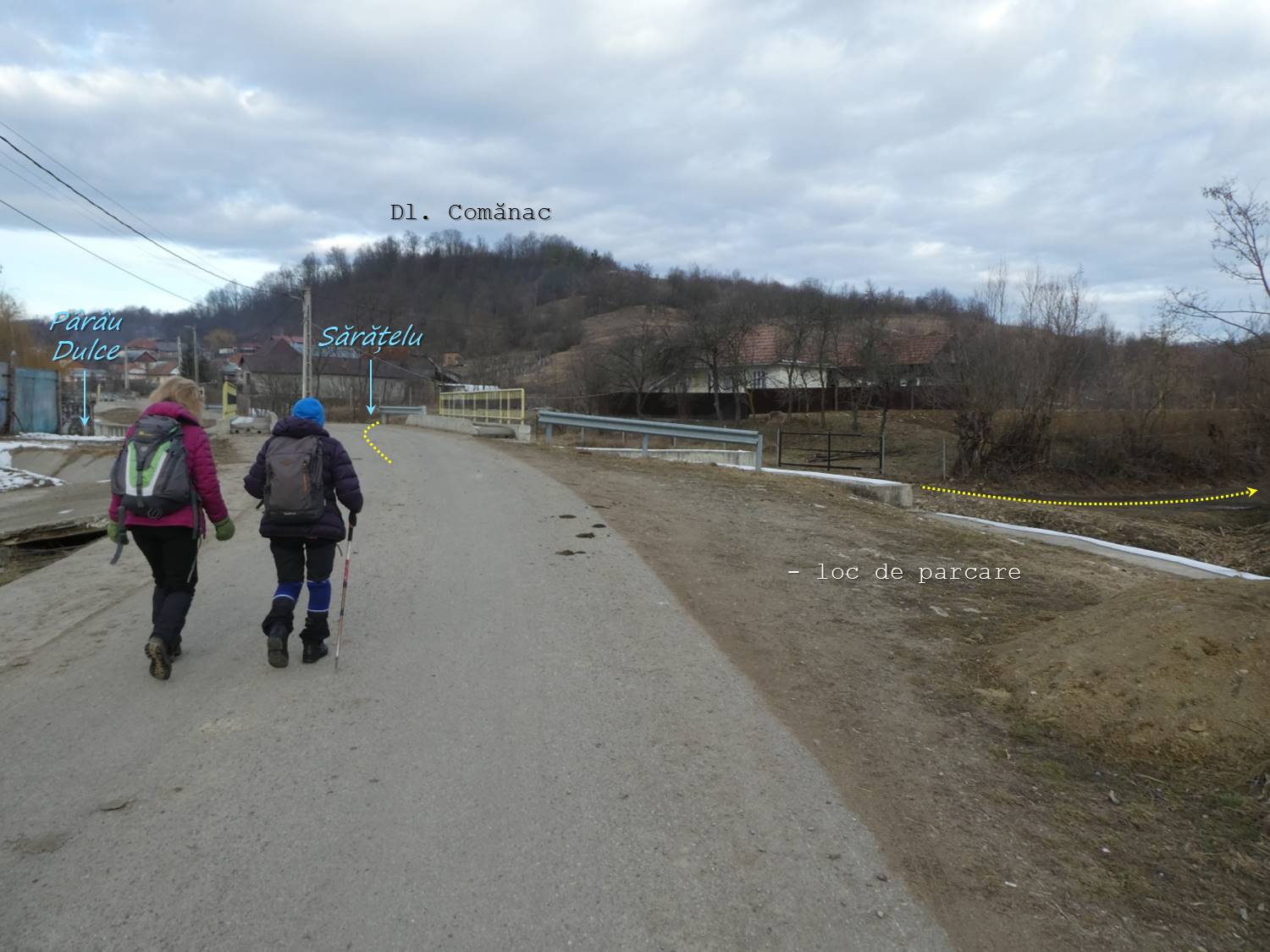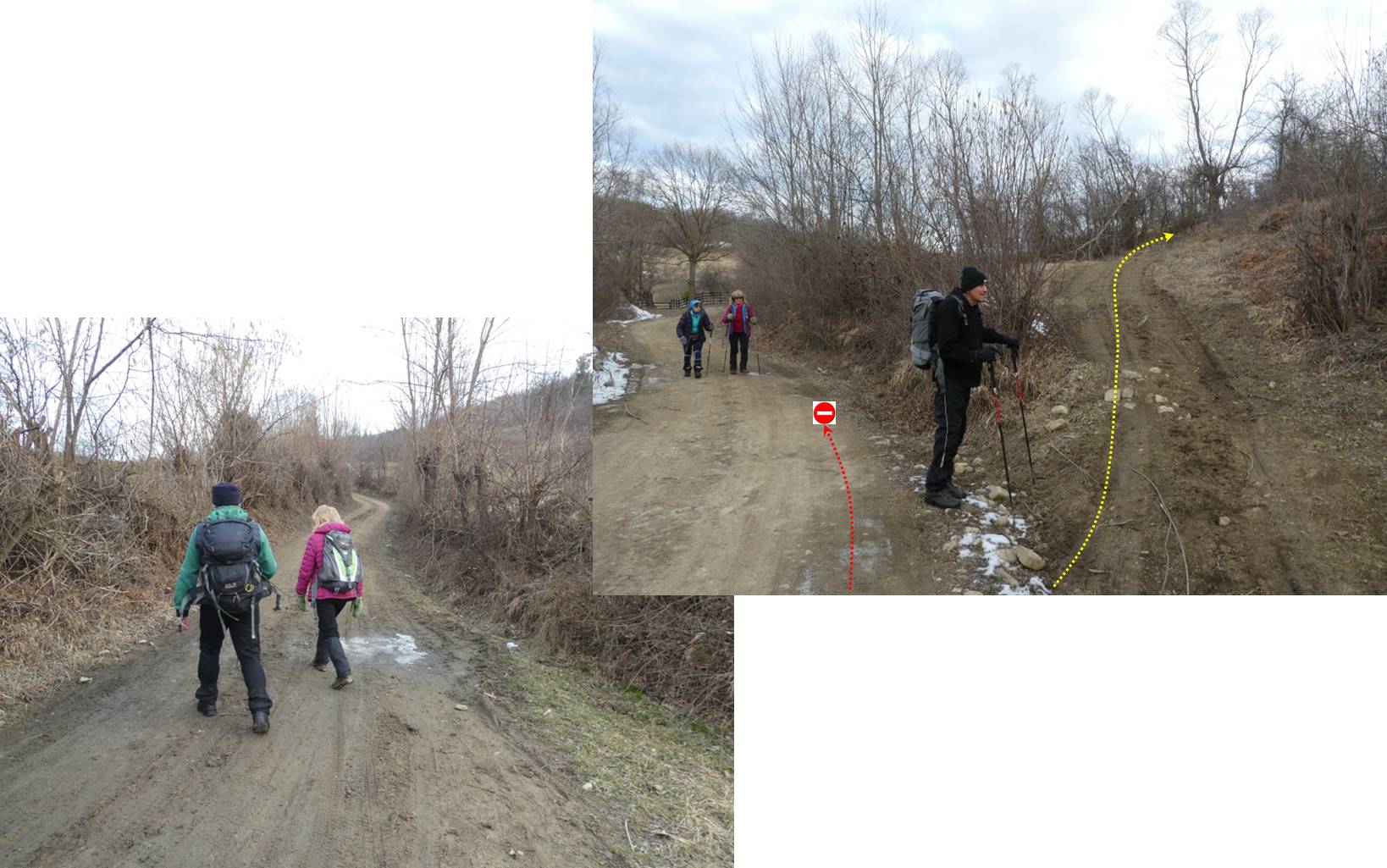 … după 350 m pe drumul paralel cu pârâul prindem capătul unui drumeag …