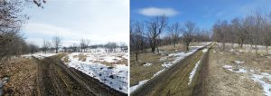 … ieșirea într-un șir de poieni întrerupte doar de pâlcuri de livezi părăsite.