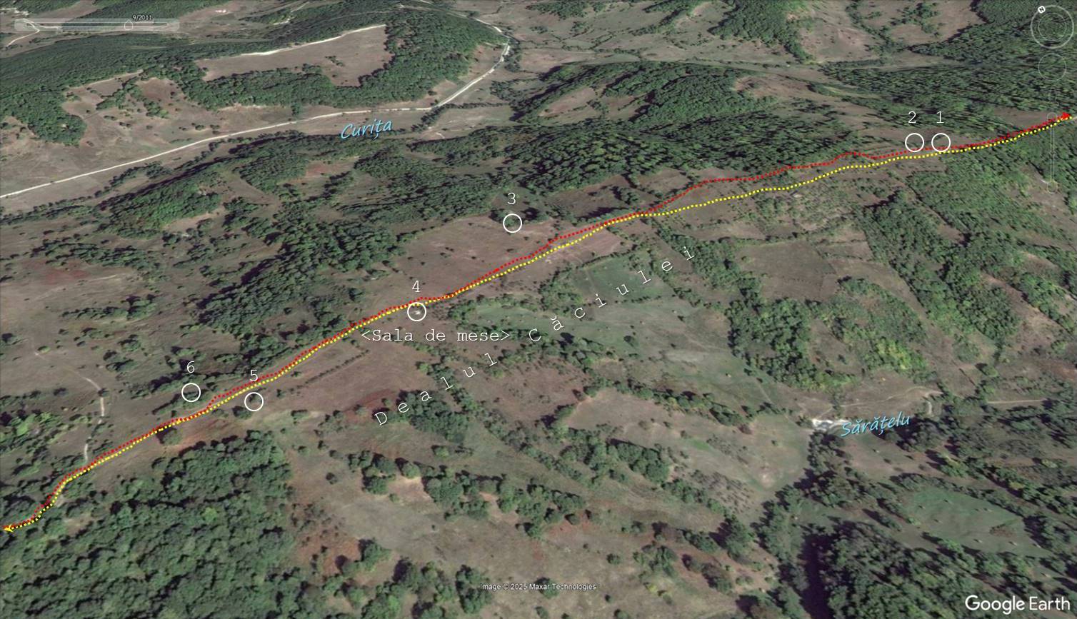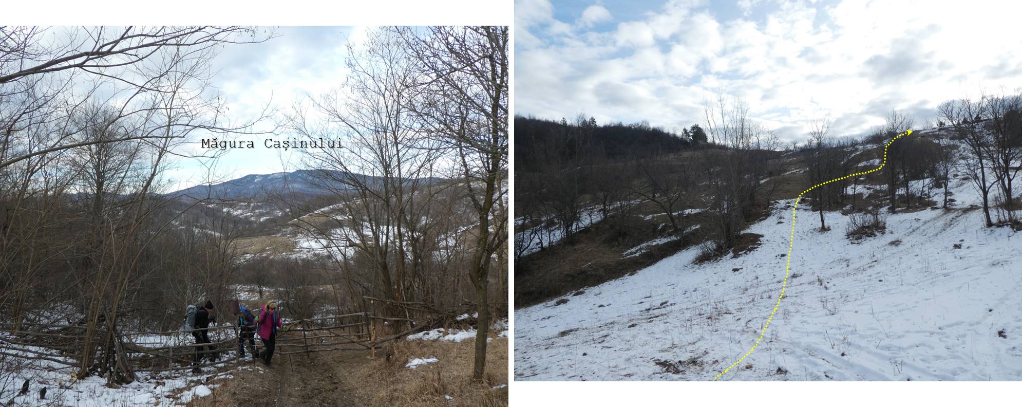 Nu vrem așa că râmânem pe … dreapta, tot în suiș, văzând ocolirea uneia dintre obârșiile Sărățelului; în felul acesta ne vom instala pe coama interfluviului Cașin – Curița; …