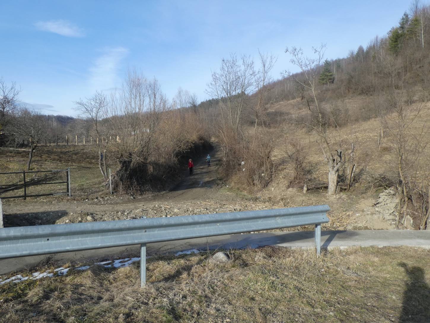 … odată ce drumul traversează o mică șa de deasupra unei văiugi ce ține de valea Sărățelului, …