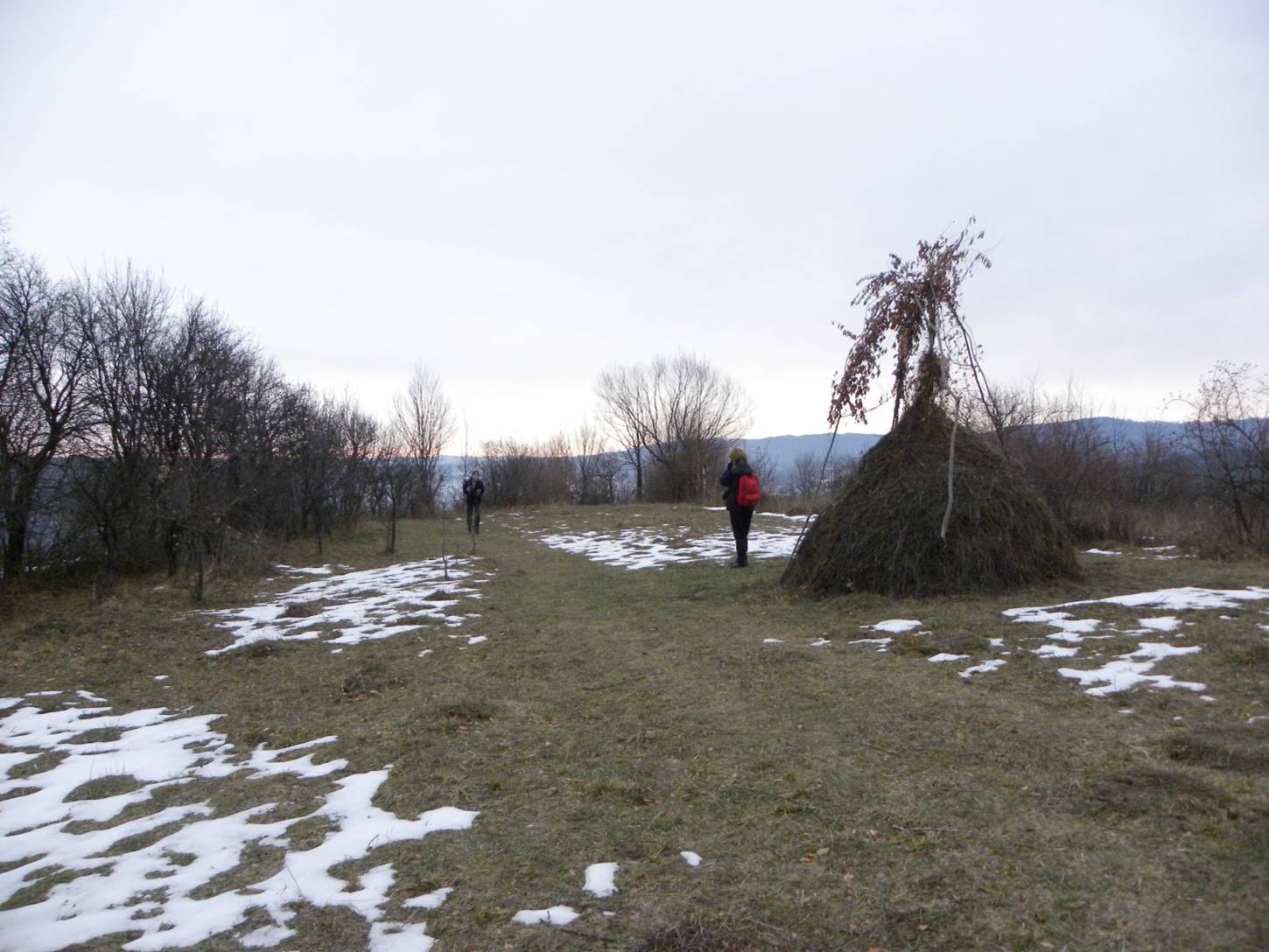 … și ajungem astfel pe coama piciorului sudic al Dealului Colțu Înalt până nu departe de crucea de pe promontoriul ce domină valea Pârâului Dulce la ieșirea sa dintre dealuri.
