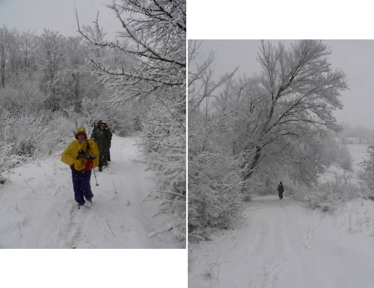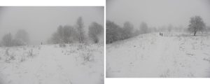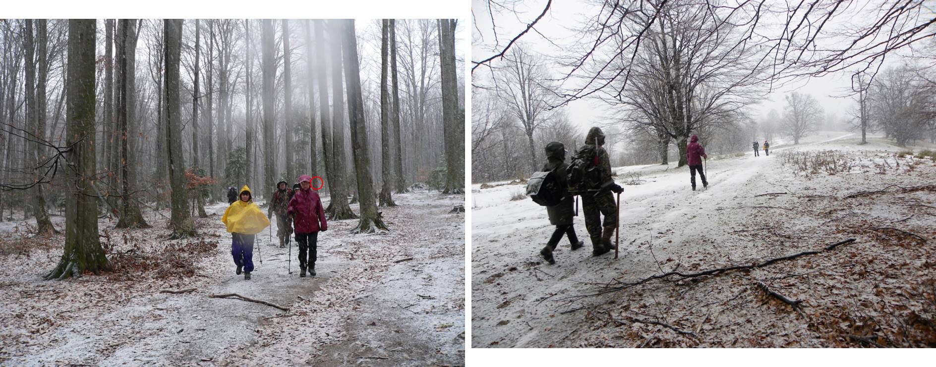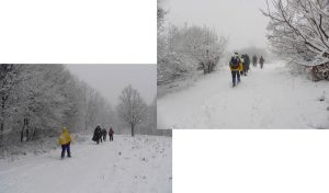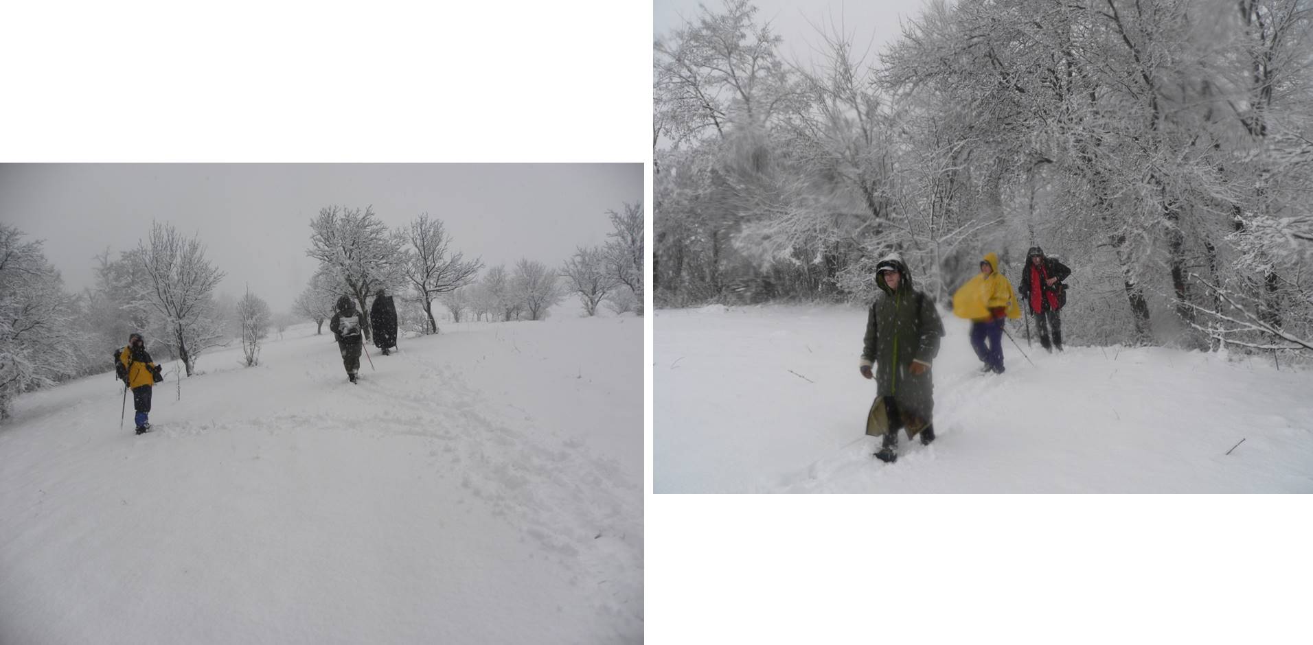 … a devenit ninsoare în toată regula ! A trecut puțin peste jumătate de oră de când am intrat în pădure și e momentul să schimbăm drastic, ușor-ușor, cu 180 de grade direcția de mers pentru că suntem deasupra celei mai departate obârșii a Pârâului Dulce de gura sa, bineînțeles. Un bun reper îl reprezintă parcela de conifere care acoperă de câțiva ani buni fostele poieni ale Felegușului.