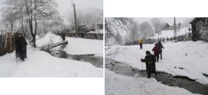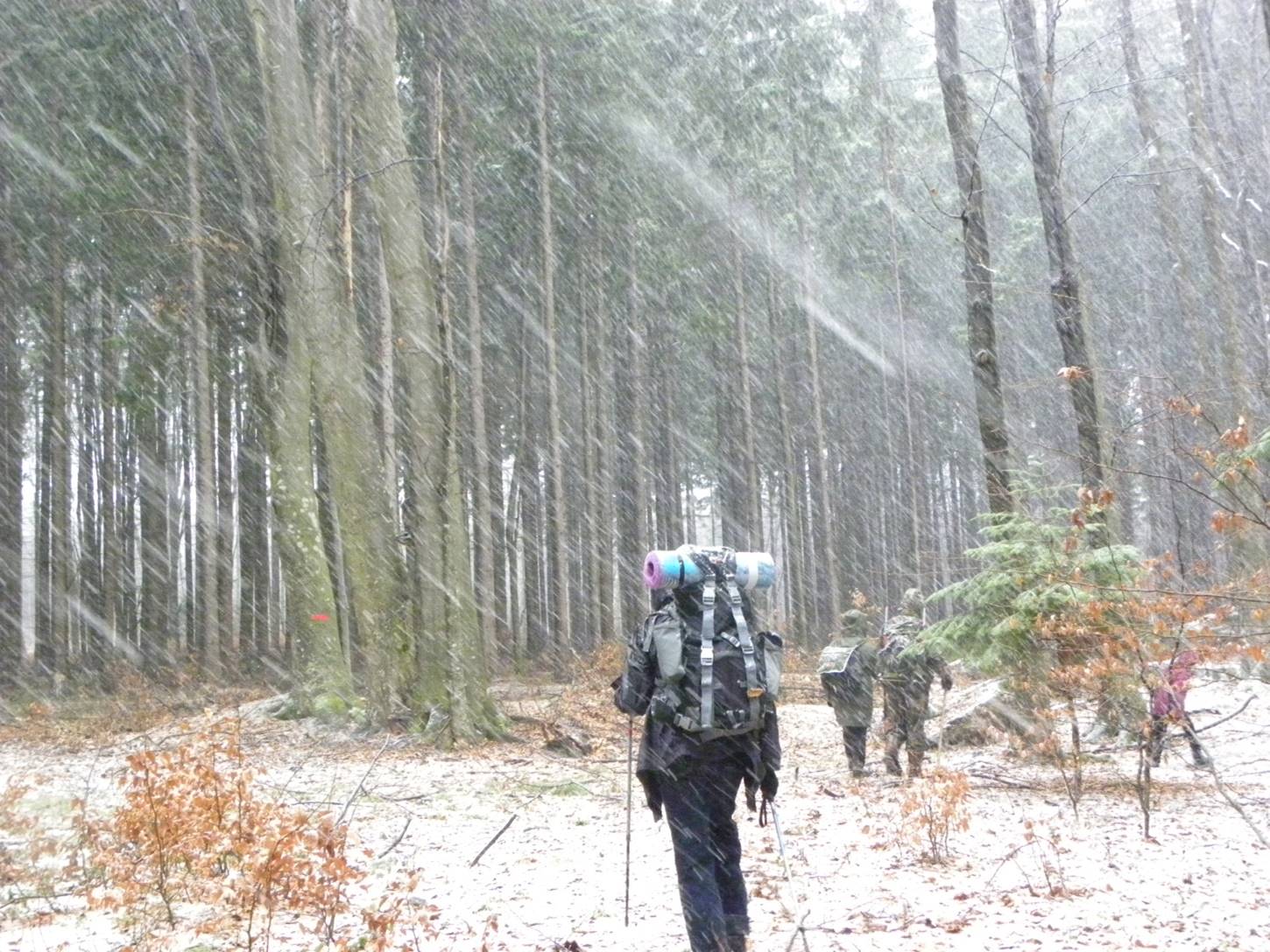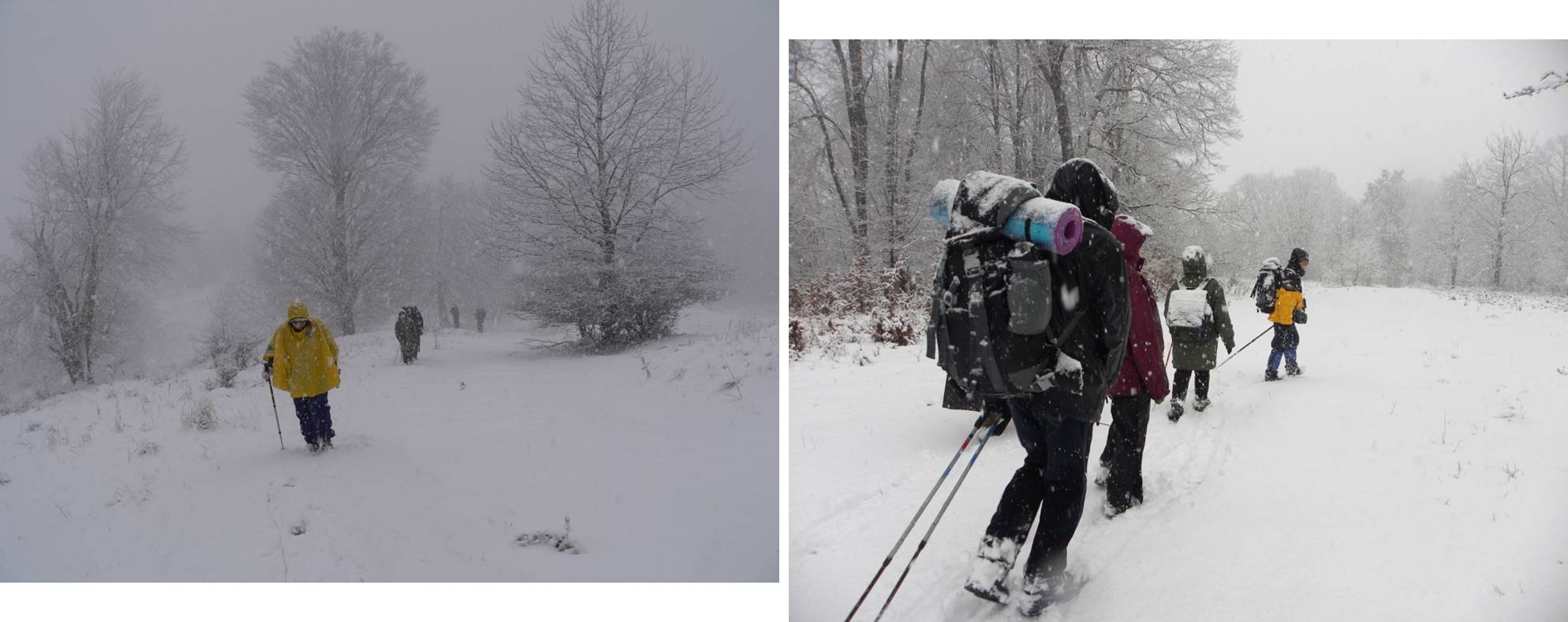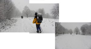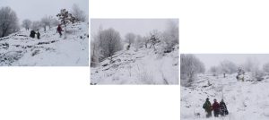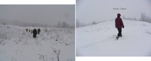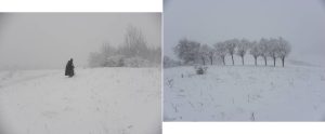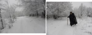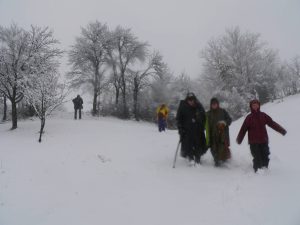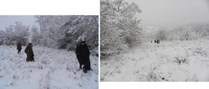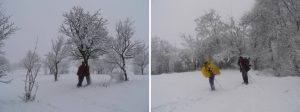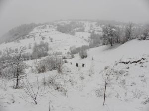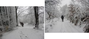 … a devenit ninsoare în toată regula ! A trecut puțin peste jumătate de oră de când am intrat în pădure și e momentul să schimbăm drastic, ușor-ușor, cu 180 de grade direcția de mers pentru că suntem deasupra celei mai departate obârșii a Pârâului Dulce de gura sa, bineînțeles. Un bun reper îl reprezintă parcela de conifere care acoperă de câțiva ani buni fostele poieni ale Felegușului.