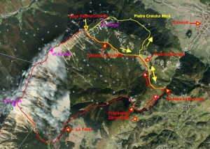 1. Fântâna lui Botorog – Poiana Zănoaga – Piatra Craiului Mică – Şaua Crăpăturii – Şaua Curmăturii – Creasta Nordică – Vf. Turnu – Şaua Padinei Închise – Cabana Curmatura – Poiana Zănoaga – Fântâna lui Botorog – cca 10 ore