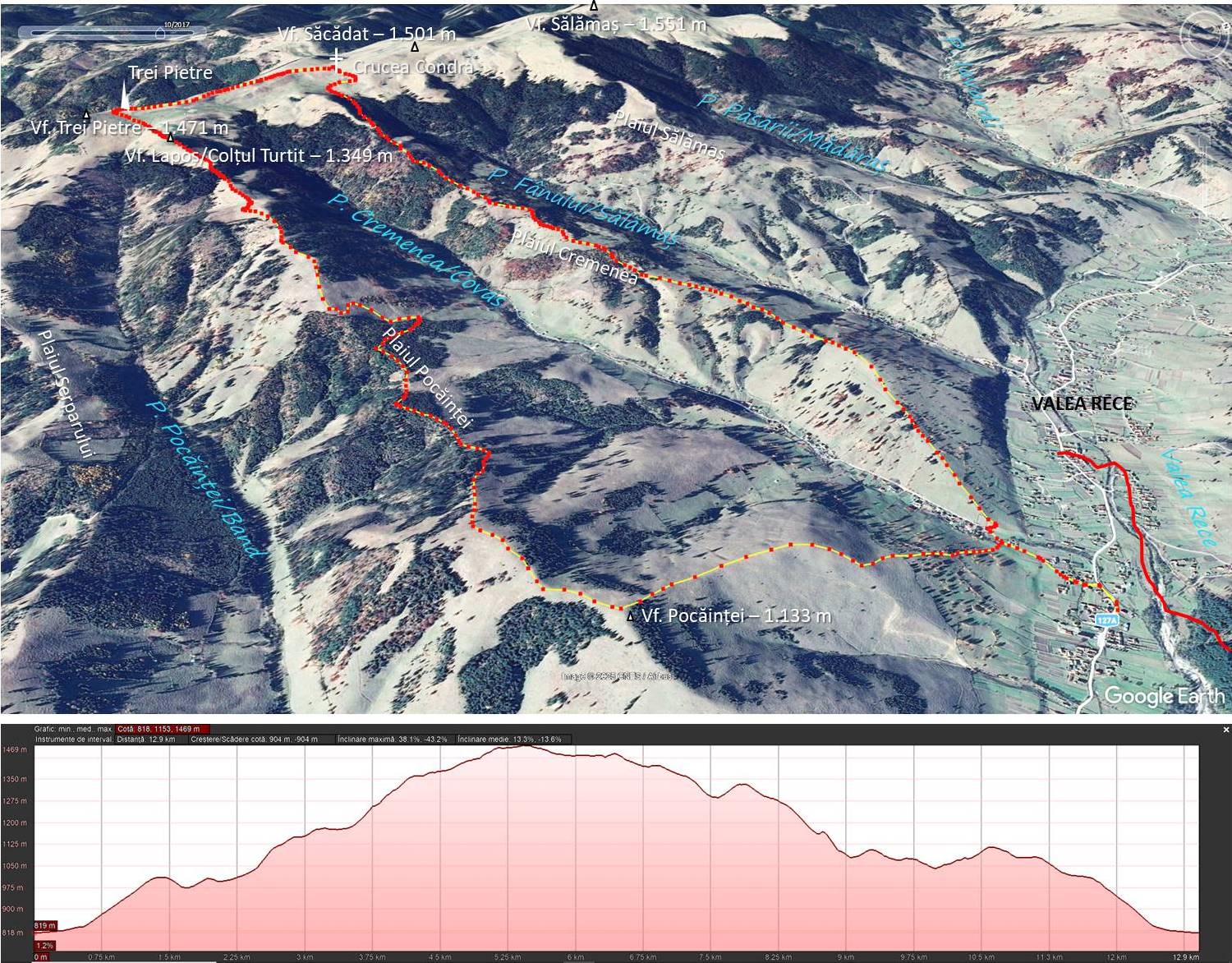 Traseu: VALEA RECE (Gura Cremenii) – Plaiul Cremenii – Crucea Condra – Trei Pietre – Colțul Tocit – Vf. Pocăinței – Gura Cremenii