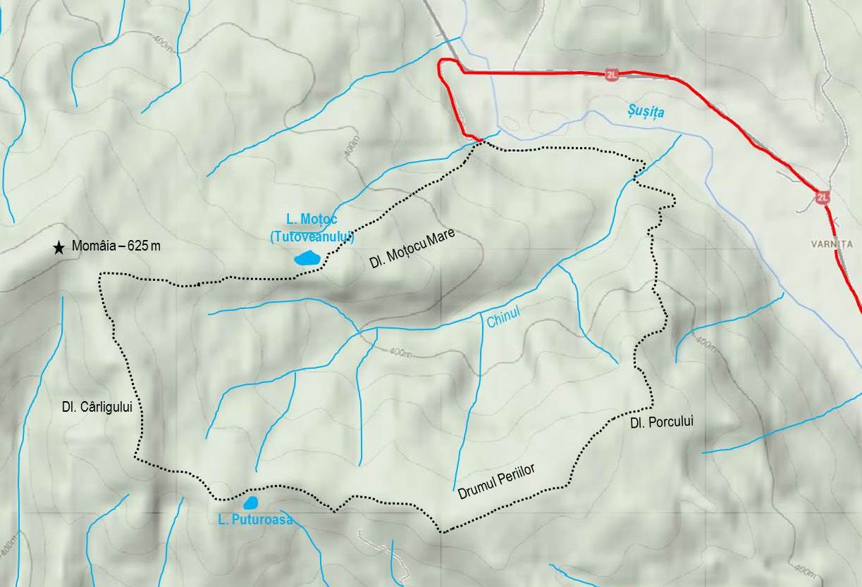 – traseu montan: Gura Pârâului Lacul Tutovanului – Dl. Porcului – Drumul Periilor – Lacul Puturoasa – Dl. Cârligului – Lacul Tutovanului – Dl. Moțocu Mare – Gura Pârâului Lacul Tutovanului
