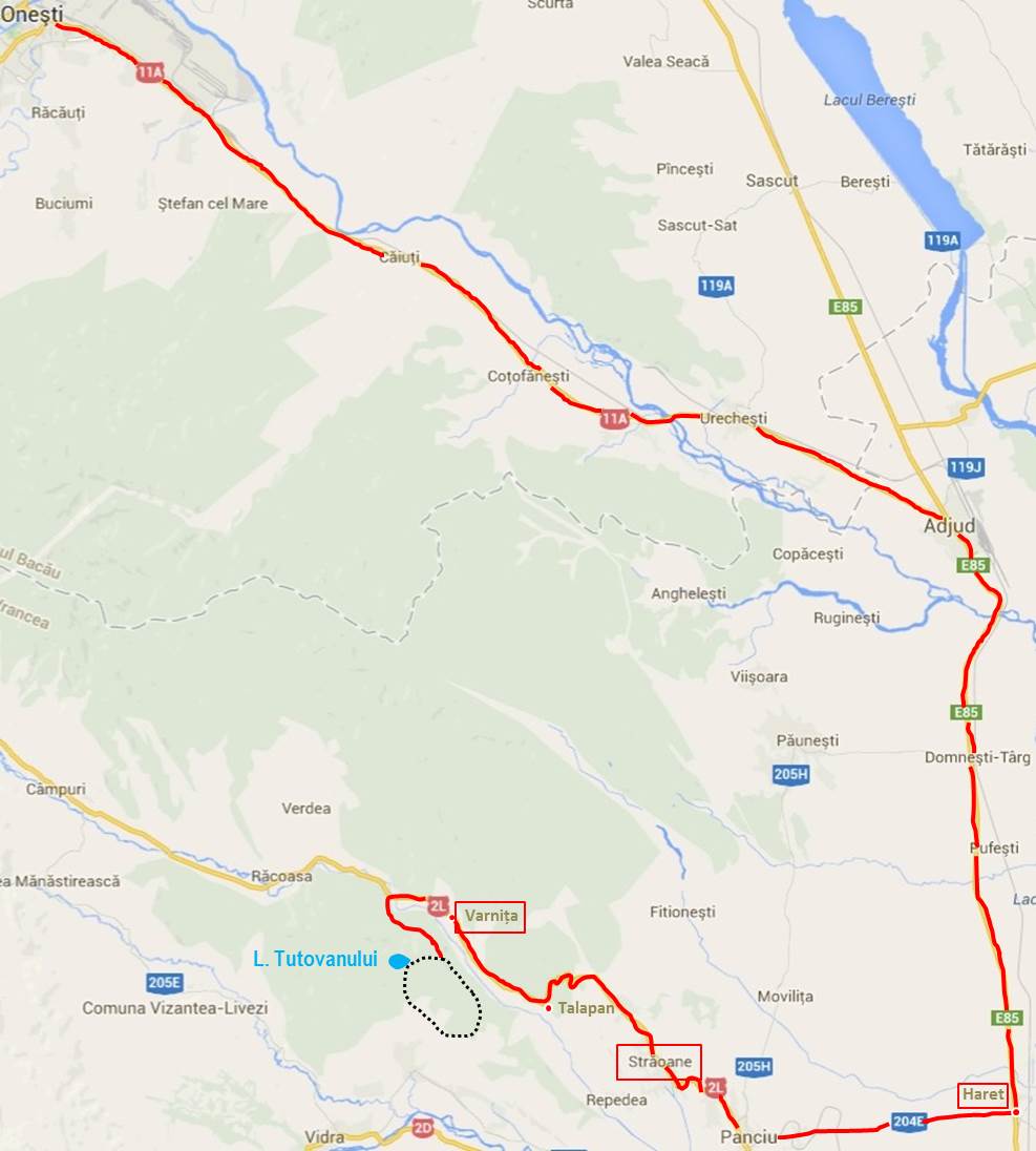 – traseu “cultural”: Onești – Haret (Monumentul Măriucăi Zaharia, Biserica din Haret) – Străoane de Jos (biserica) – Văleni (biserica, iazul) – Repedea (bisericile) – Străoane de Sus (bisericile) – Muncelu (biserica, Monumentul Ecaterinei Teodoroiu) – Varnița (biserica, Monumentul ofițerului francez) – Gura Pârâului Lacul Tutovanului