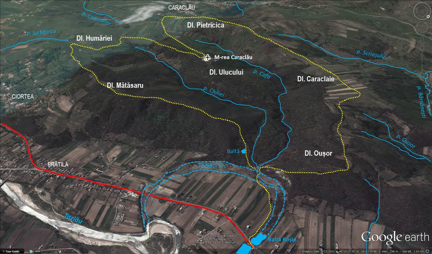 Traseu: Balta Roșie (Brătila) – Dl. Oușor – Dl. Caraclaie – Dl. Pietricica – Dl. Ulucului (M-rea Caraclău) – Dl. Humăriei – Dl. Mătăsarului – Balta Roșie