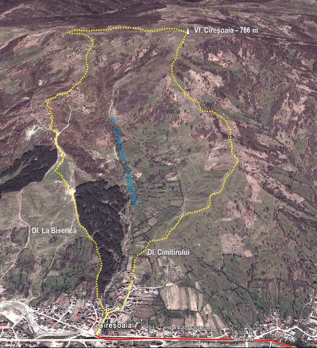 Traseu: Cireșoaia – Dl. Cimitirului – Dl. Cireșoaia – Dl. Bisericii – Cireșoaia