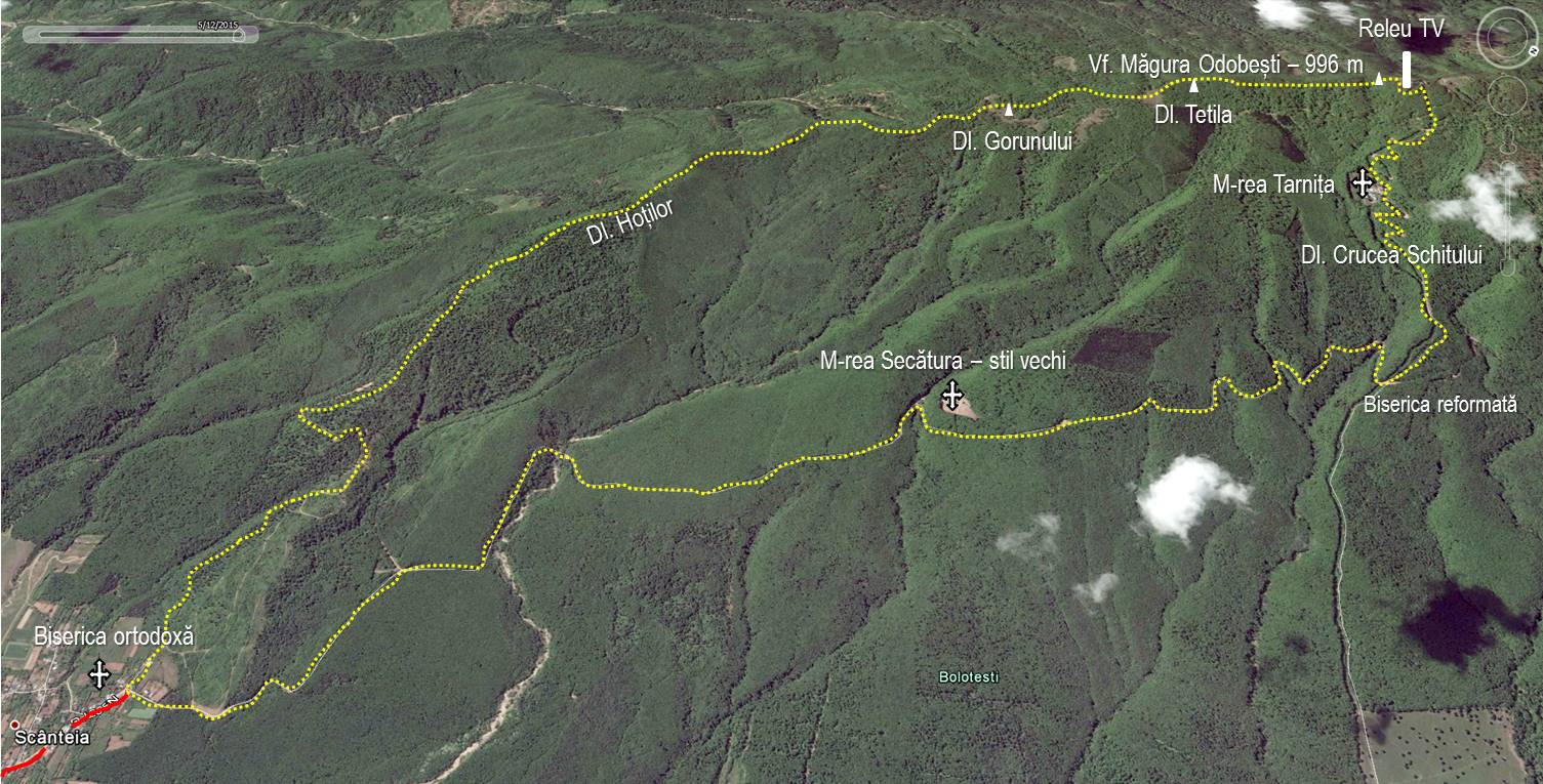 Traseu: Scânteia/Jariștea/VN – M-rea Sf. Voievozi – M-rea Tarnița – Măgura Odobești – Creasta sudică – Scânteia