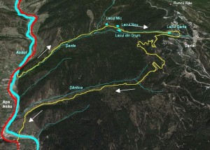 – traseu: Apa Asău – Valea Şantei – Lacurile Şantei – Vf. Şanta – Valea Şănticăi – Apa Asău