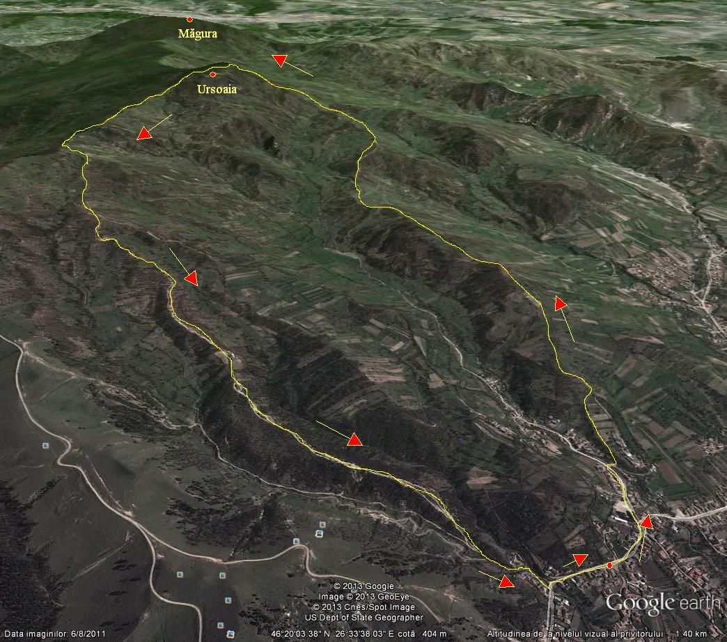 – traseu: Cucuieţi – Vf. Ursoaia – Cucuieţi