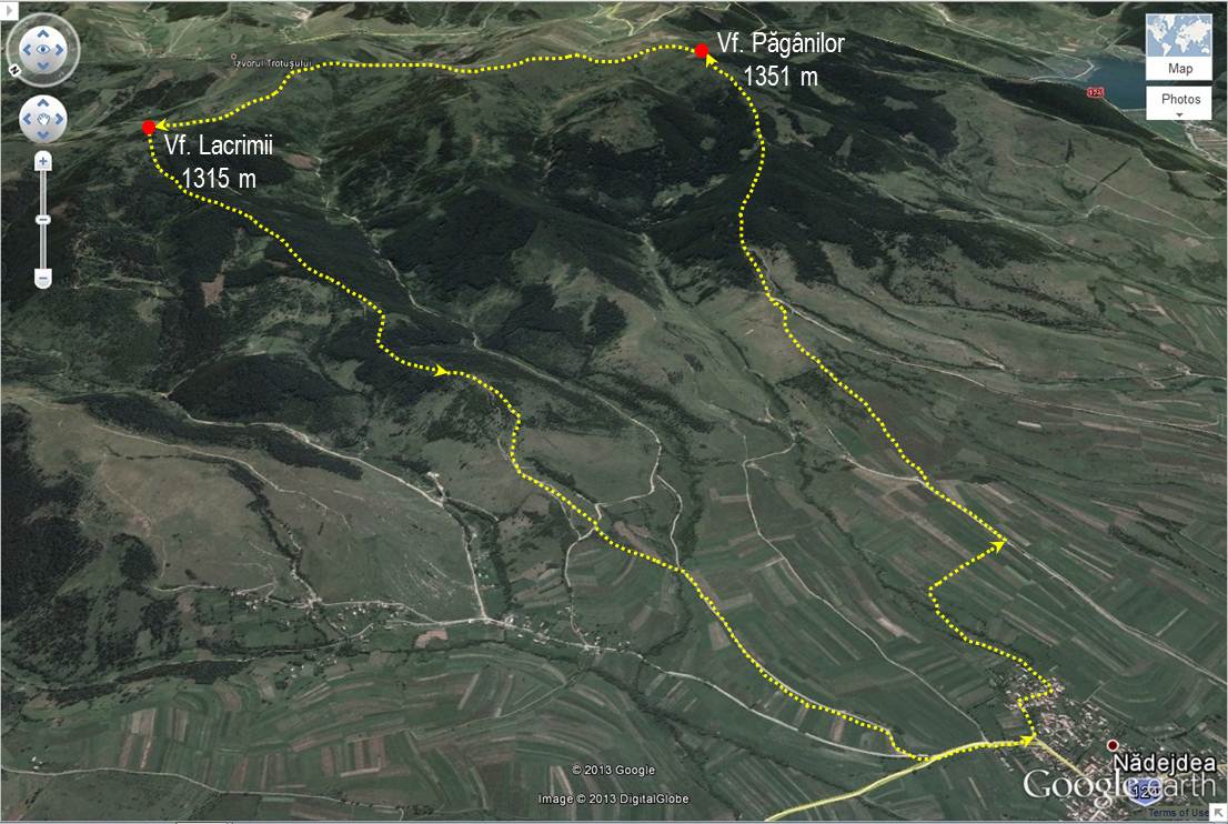 – traseu: Nădejdea – Vf. Păgânilor – Vf. Lacrimii – Nădejdea