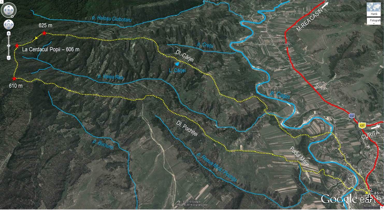 Traseu: Cașin – Dl. Cârja – Circuitul Văii Rele – Dl. Pochița – Cașin
