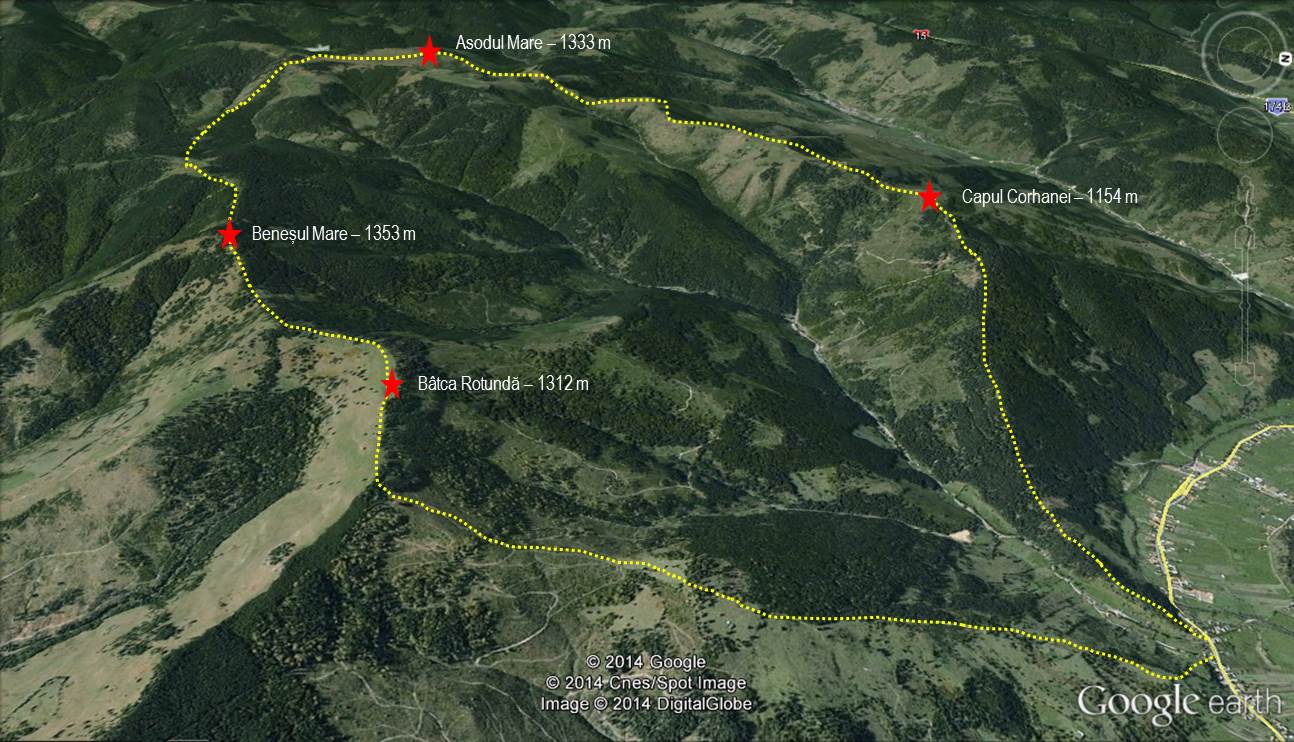 Circuitul Asodului: Gura Asodului – Bâtca Rotundă – Beneșul Mare – Asodul Mare – Capul Corhanei – Gura Asodului
