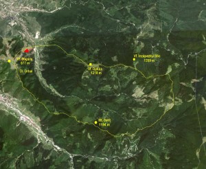 Traseu: Ojdula – Dl. Stejăriş Dl. Orbai Mt. Bariţ Vf. Înzăpezitu Mic Vf. Ojdula Dl. Ghaniaş Ojdula