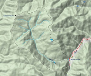 Traseu: Gura Caraslăului (Cascada Caraslău) – Mt. Caraslău (Lac, Vf. Caraslău) – Mt. Mic – Vf. Ghepar (Cetatea Haiducilor) – Vf. Boca – Dl. Caraslău – Valea Caraslău (Lac) – Gura Caraslăului
