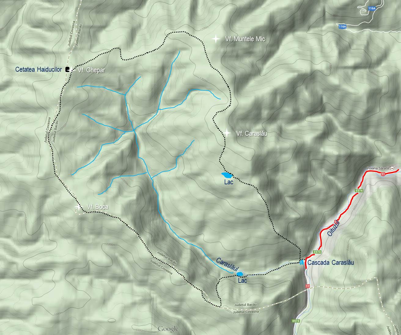 Acces: Onești – Gura Caraslaului/Camping Poiana Sărată – cca 35 km
