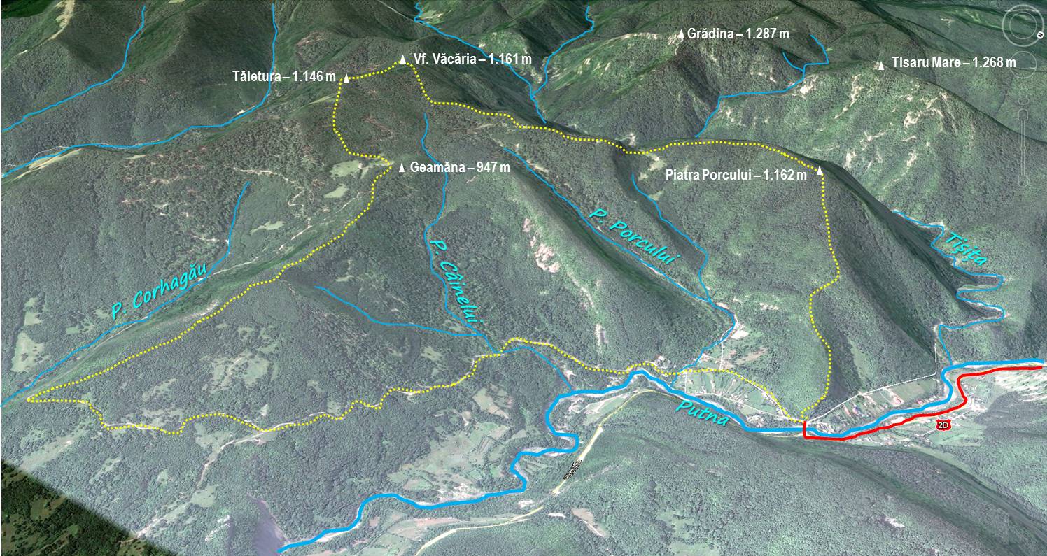 Traseu: Lepșa – Piatra Porcului – Plaiul Văcăria – Vf. Tăietura – Vf. Gemenea – Lepșa