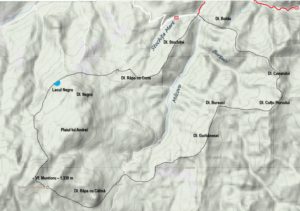 Traseu: Andreiașu de Sus (gura Stochiței Mari) – Dl. Stochiței – Dl. Râpa cu Corni – Dl. Negru – Lacul Negru – Vf. Muntioru – Schitul Muntioru – Dl. Râpa cu Cătină – Poiana Stochița – Dl. Gurbănesei – Dl. Bursuci – Dl. Colțu Porcului – Dl. Cenaru – Dl. Boldu – gura Stochiței Mari