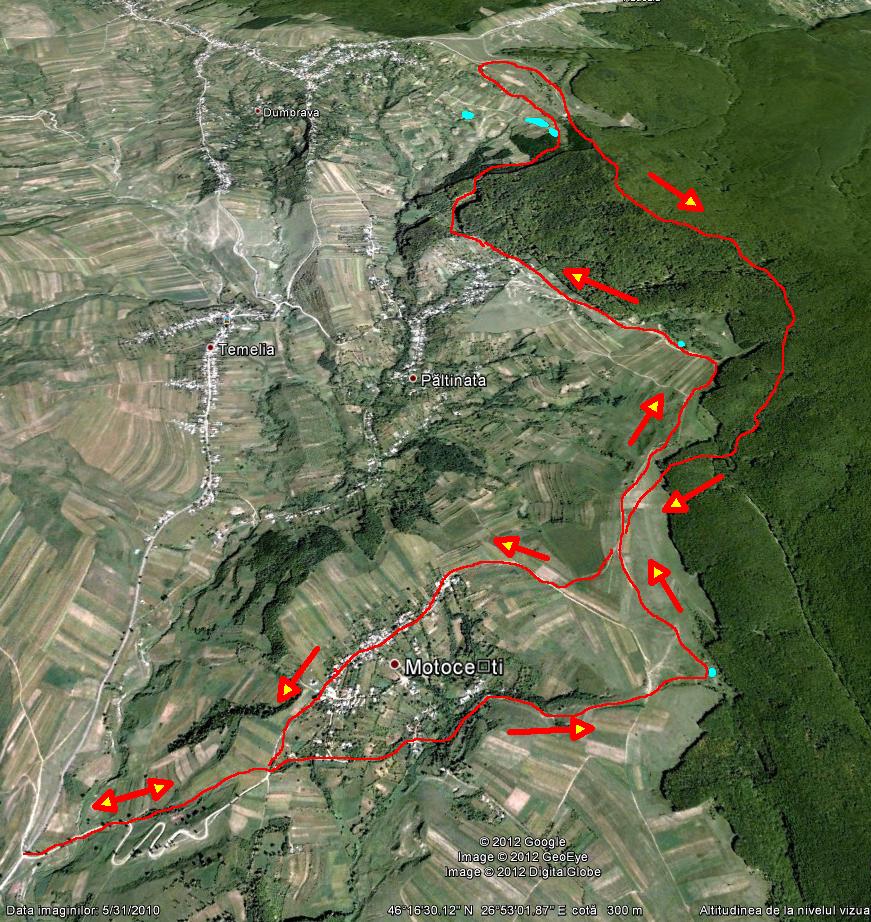 Traseu: Podu Benii – Motoceşti – Balta Motoceşti – Balta Păltinata – Bălţile Dumbravei – Troiţa lui Guruiţă – Motoceşti – Podu Benii