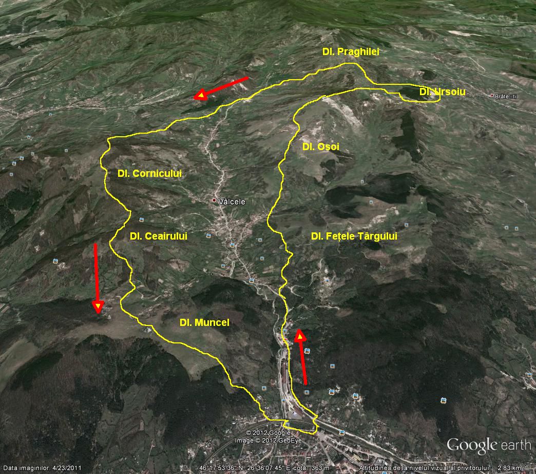 Traseu: Saline – Dl. Feţele Târgului – Dl. Osoi – Dl. Ursoiu – Dl. Praghilei – Dl. Cornicului – Dl. Muncel – Saline