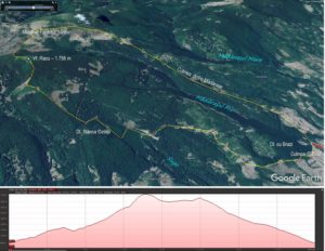 Traseu: Mădăraș (Culmea Gâtului) – Culmea cu Brazi – Valea Șugo – Dl. Stânca Cetății – Vf. Racu – Mlaștina Pârâului Săritor – Culmea dintre Mădărașe – Culmea Gâtului