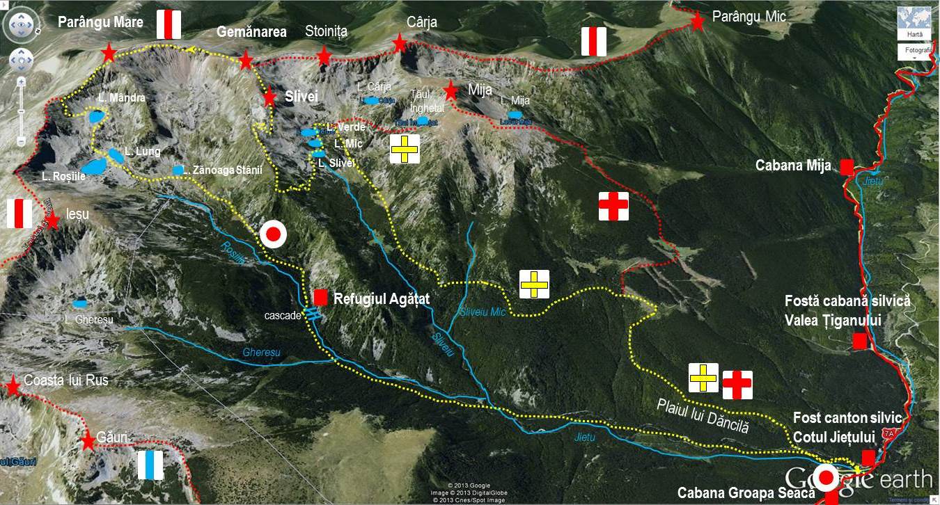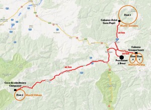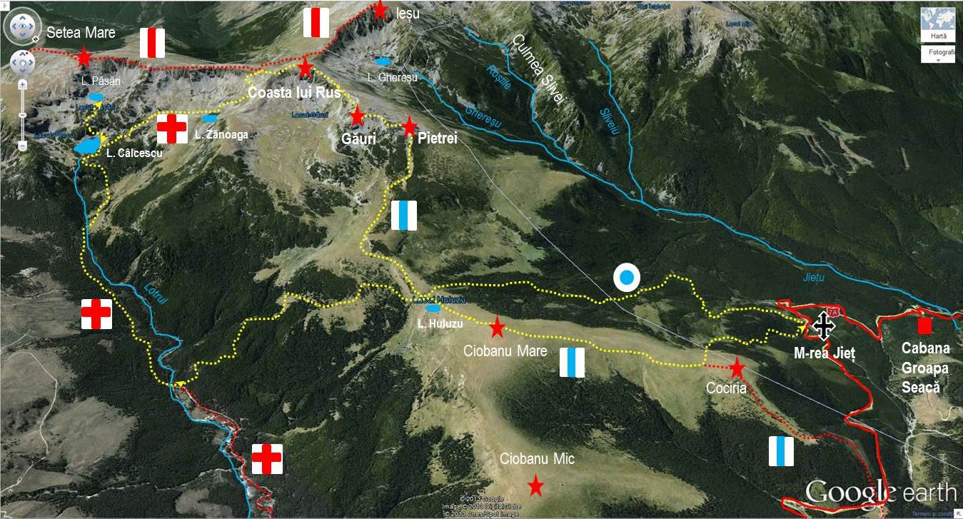 2. luni, 29 iulie: M-rea Jieț – valea Cociria – Șaua Huluzu – Vf. Pietrei – Vf. Coasta lui Rus – Șaua Tăiată – Căldarea Zănoaga – Lacul Câlcescu – Lacul Păsări – V. Lotrului – Șaua Huluzu – Mt. Ciobanul Mare – Mt. Cociria – M-rea Jieț (intrare în traseu, ora 6.30, ieşire din traseu, ora 19.00)