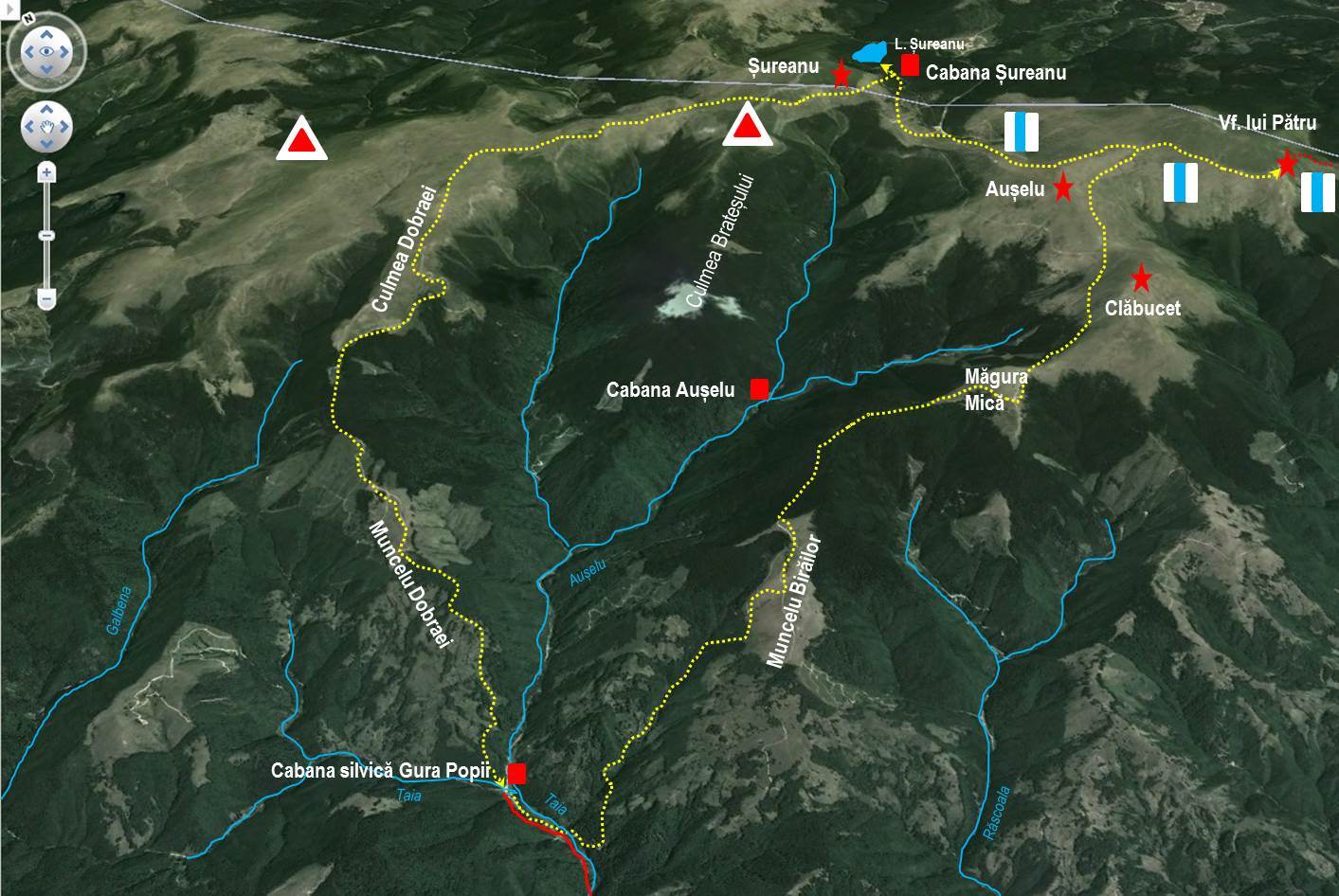 4. miercuri, 31 iulie: Cabana silvică Gura Popii – Gura Corbului – Plaiul Birăilor – Mt. Măgura Mică – Mt. Clăbucet – Vf. lui Pătru – Mt. Aușelu – Cabana Șureanu – Lacul Șureanu – Mt. Șureanu – Culmea Dobraei – Muncelul Dobraei – Cabana silvică Gura Popii (intrare în traseu, ora 6.30, ieşire din traseu, ora 19.00)