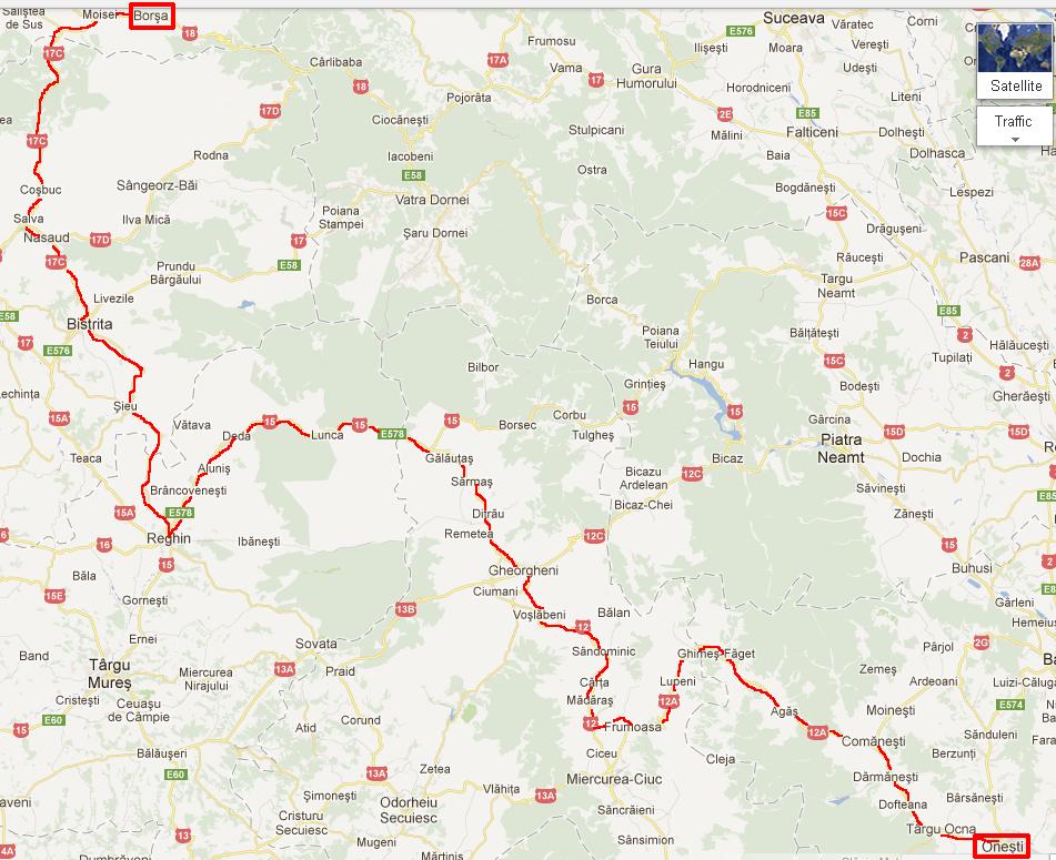 1. duminică, 29 iulie 2012: Oneşti – Piatra-Neamţ – Vatra Dornei – Staţiunea Borşa (plecare Oneşti, ora 6.00; sosire Staţiunea Borşa, ora 14.30; cca 400 km)