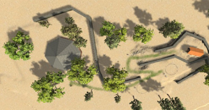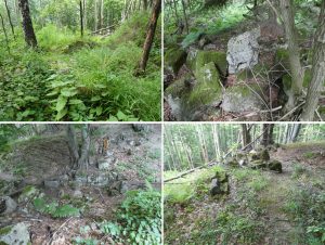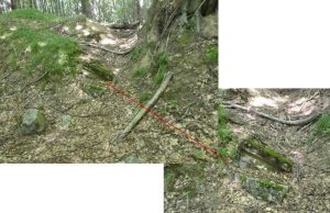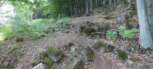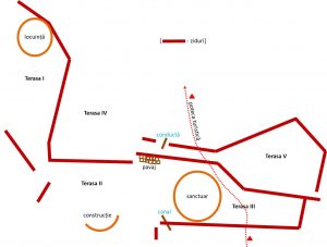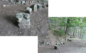 … unde se află un șir circular de stâlpișori, sau fragmente din aceștia, – presupuse urme ale unui sanctuar – …