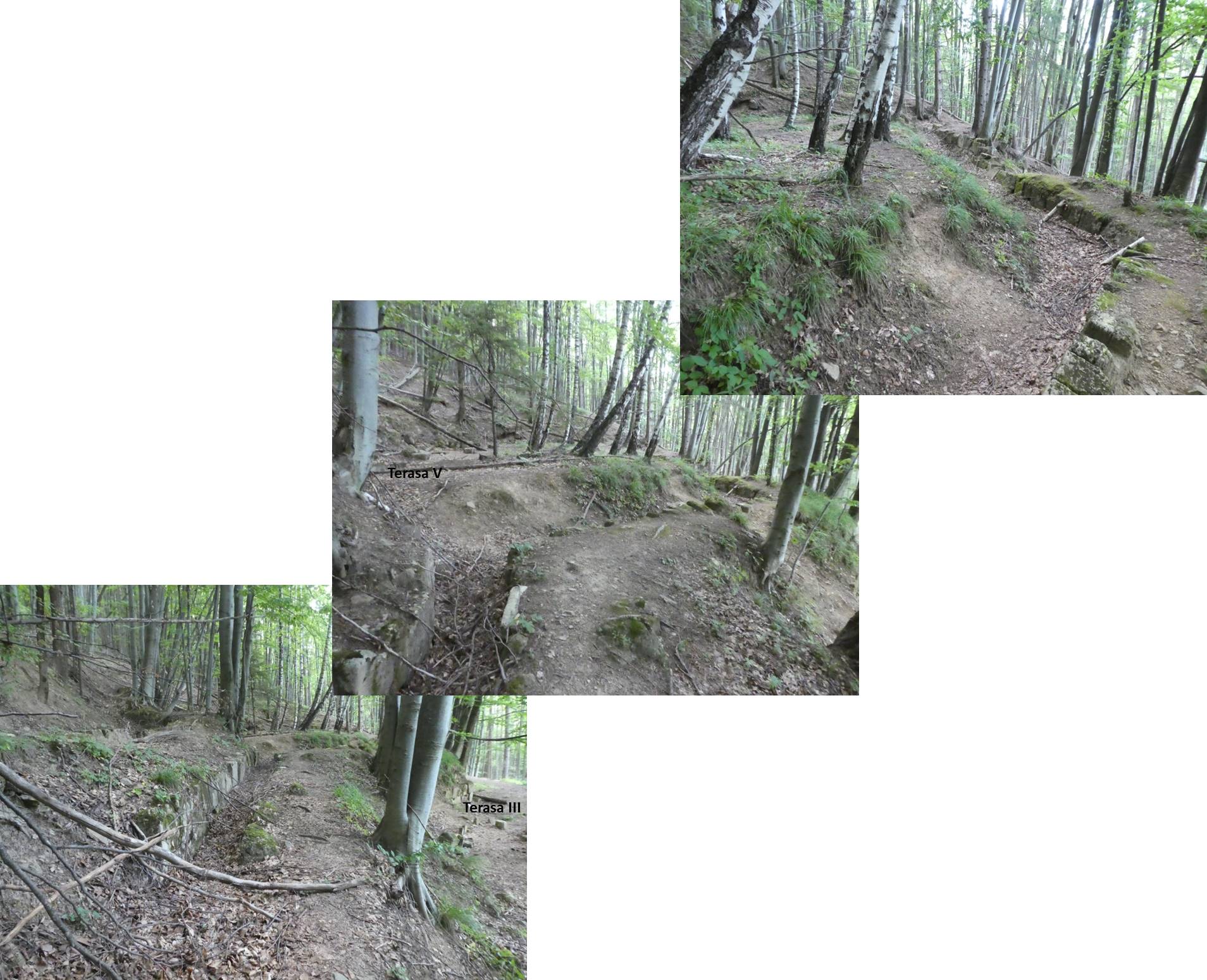 Poteca turistică ne conduce, peste zidul de sub terasa III, …