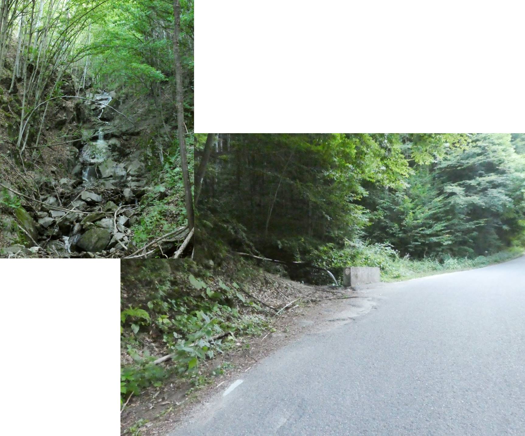 40 de metri mai sus, e gura unui pârâiaș pe albia căruia, în amonte vreo 30 de metri, un șir de săritori închipuie o cascadă suficient de pitorească pentru a merita văzută !