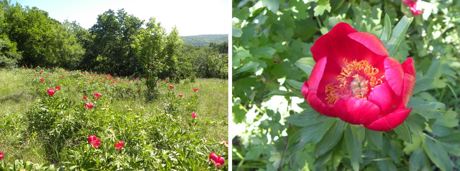 – bujori (Paeonia peregrina) sub Vârful Țuțuiatu/Munții Măcin