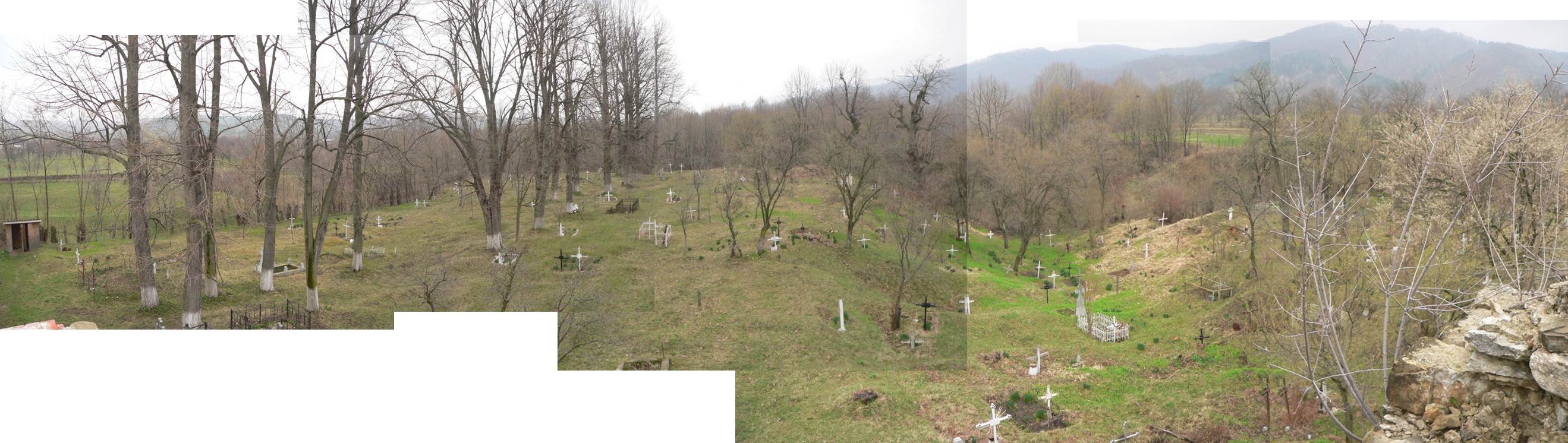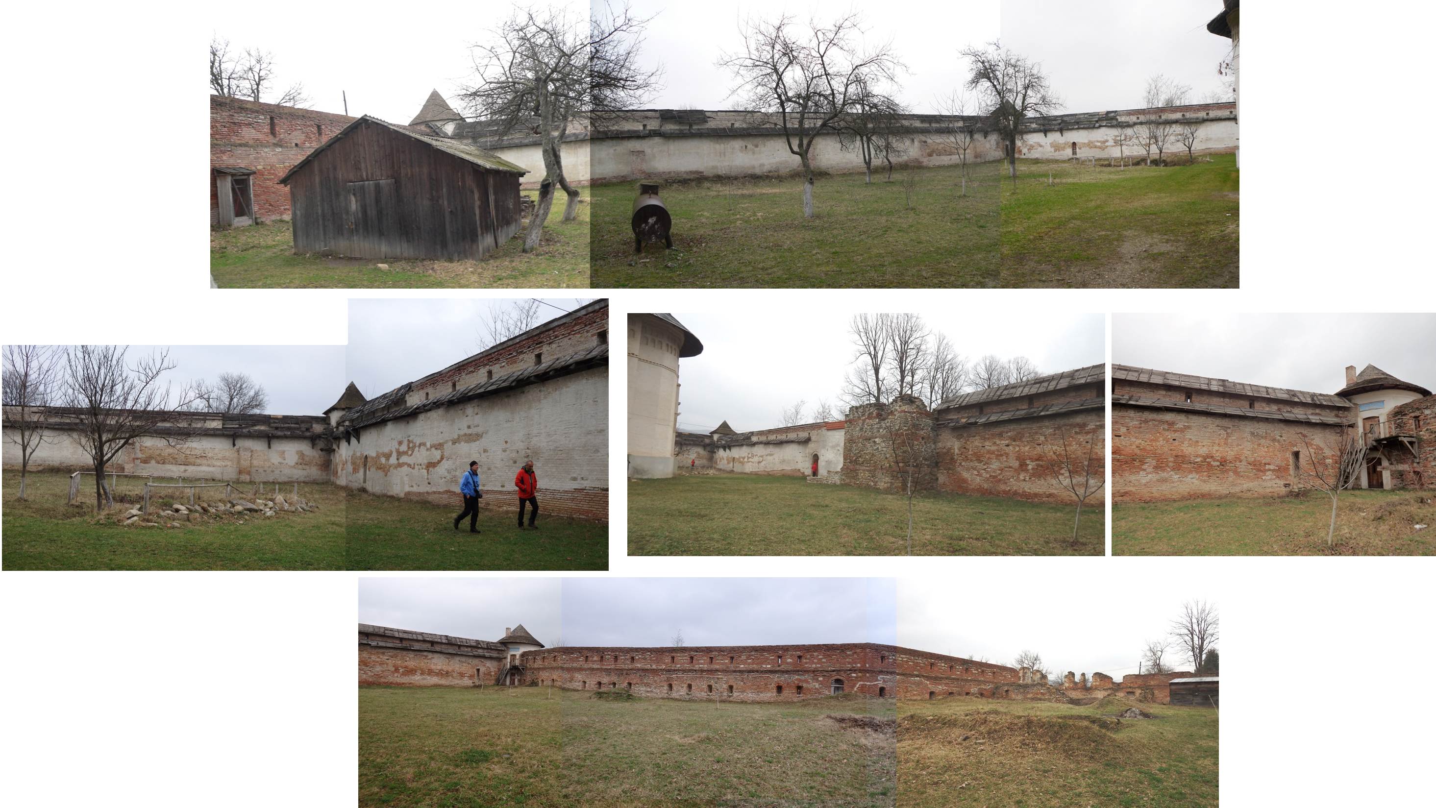 – turnul de sud-est și latura sudică cu turnul ruinat din sud-vest.