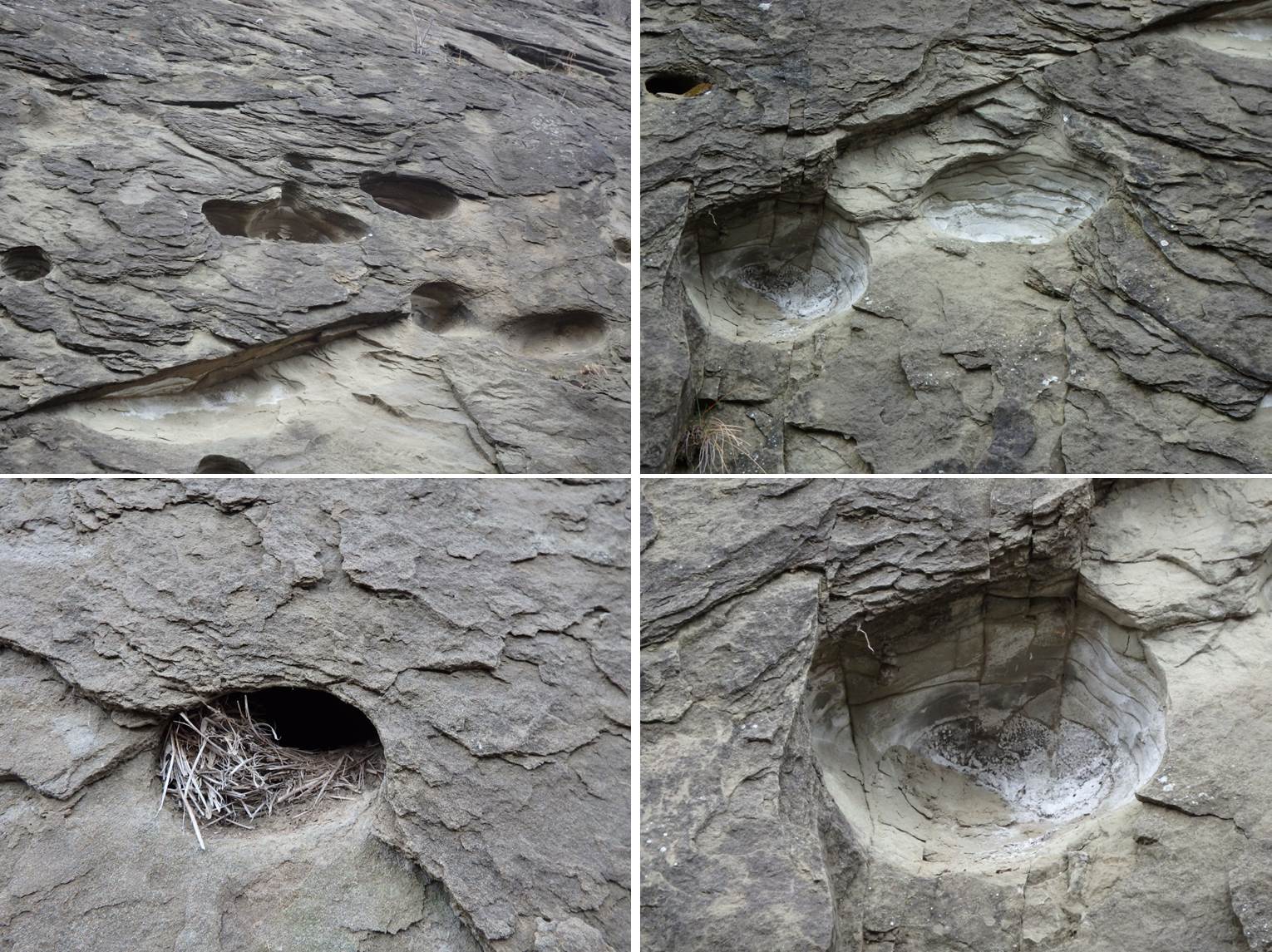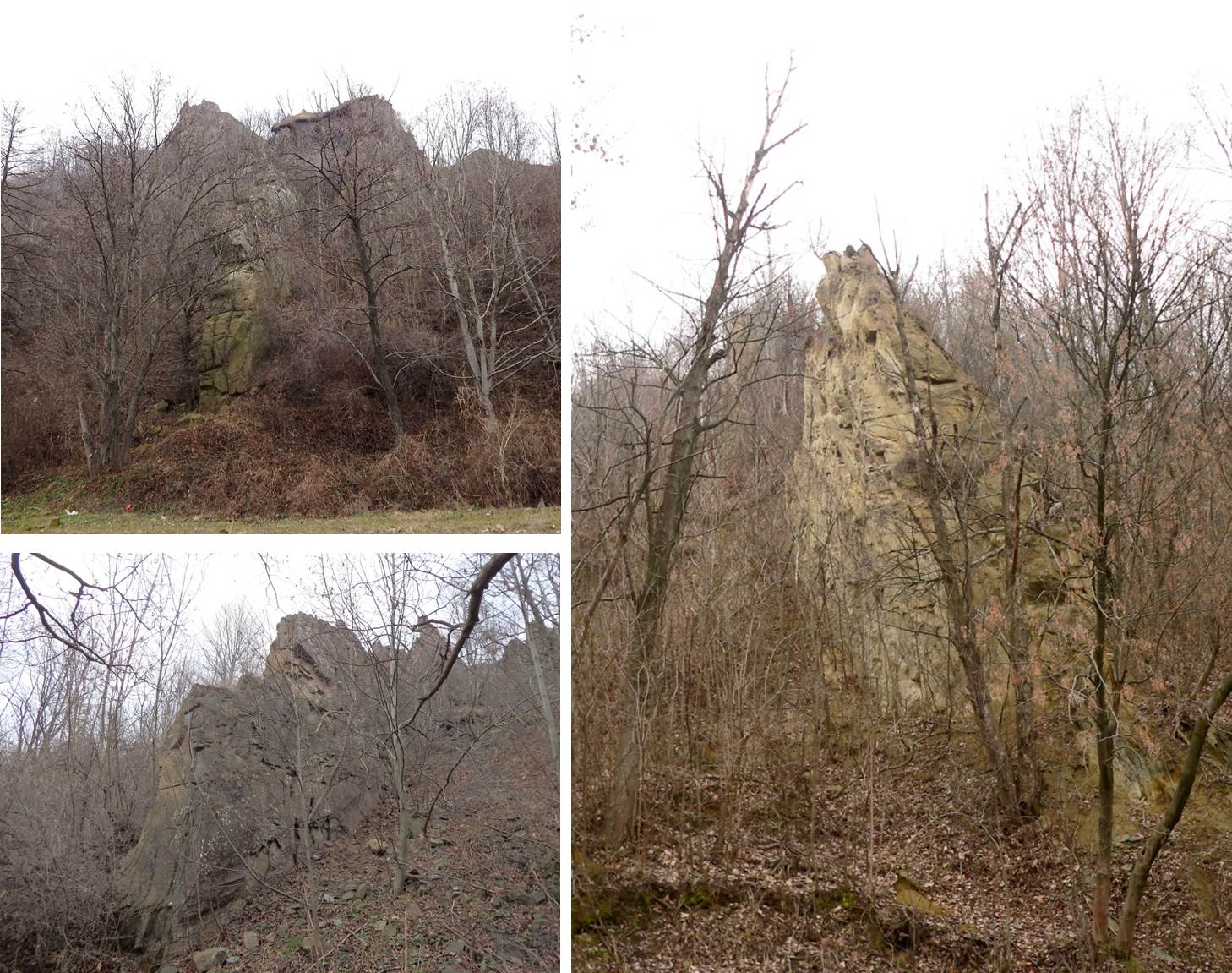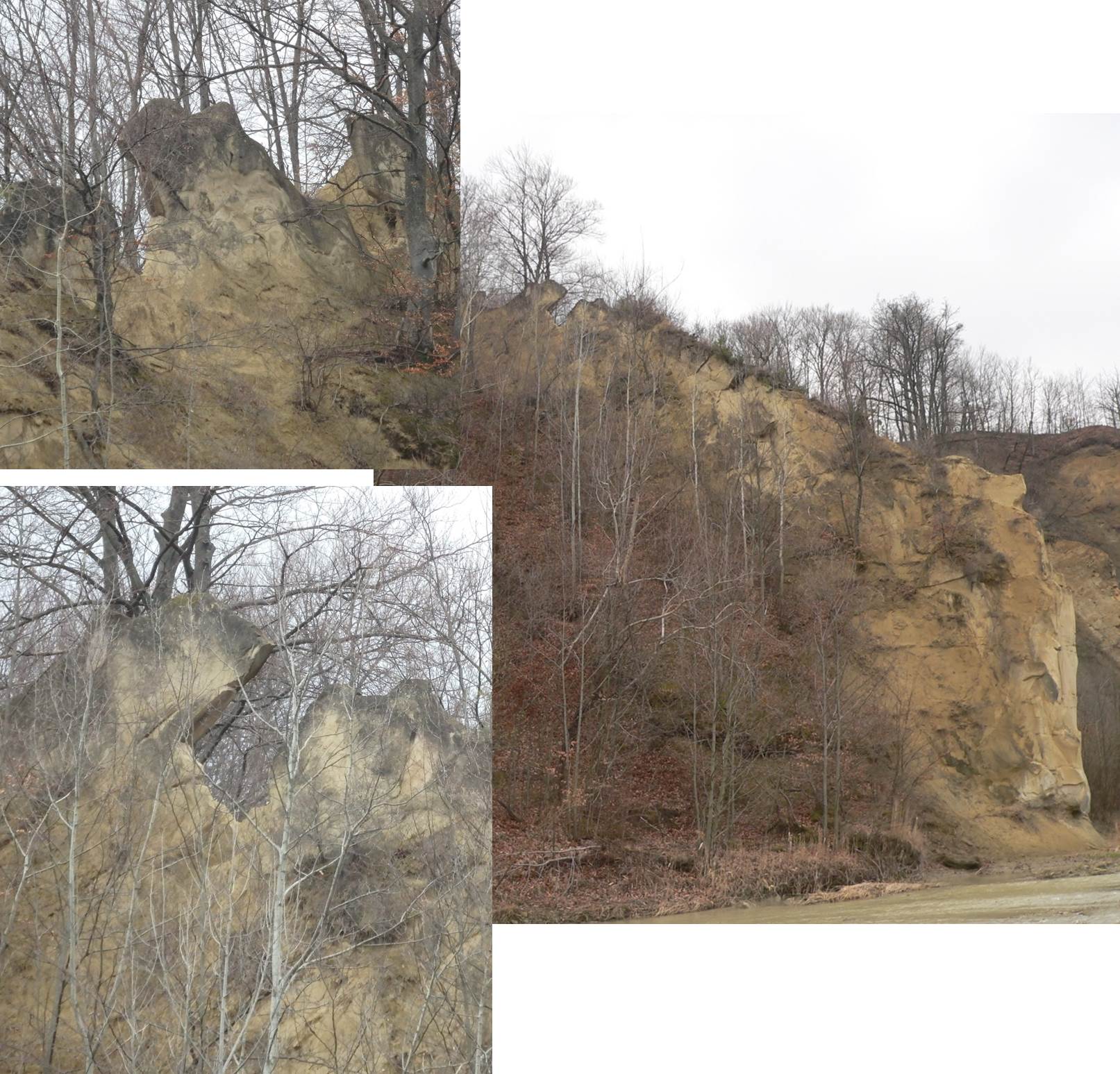… au acționat diferențiat, … profitând de nisipurile slab cimentate dintre stratele de gresie ridicate la verticală, …
