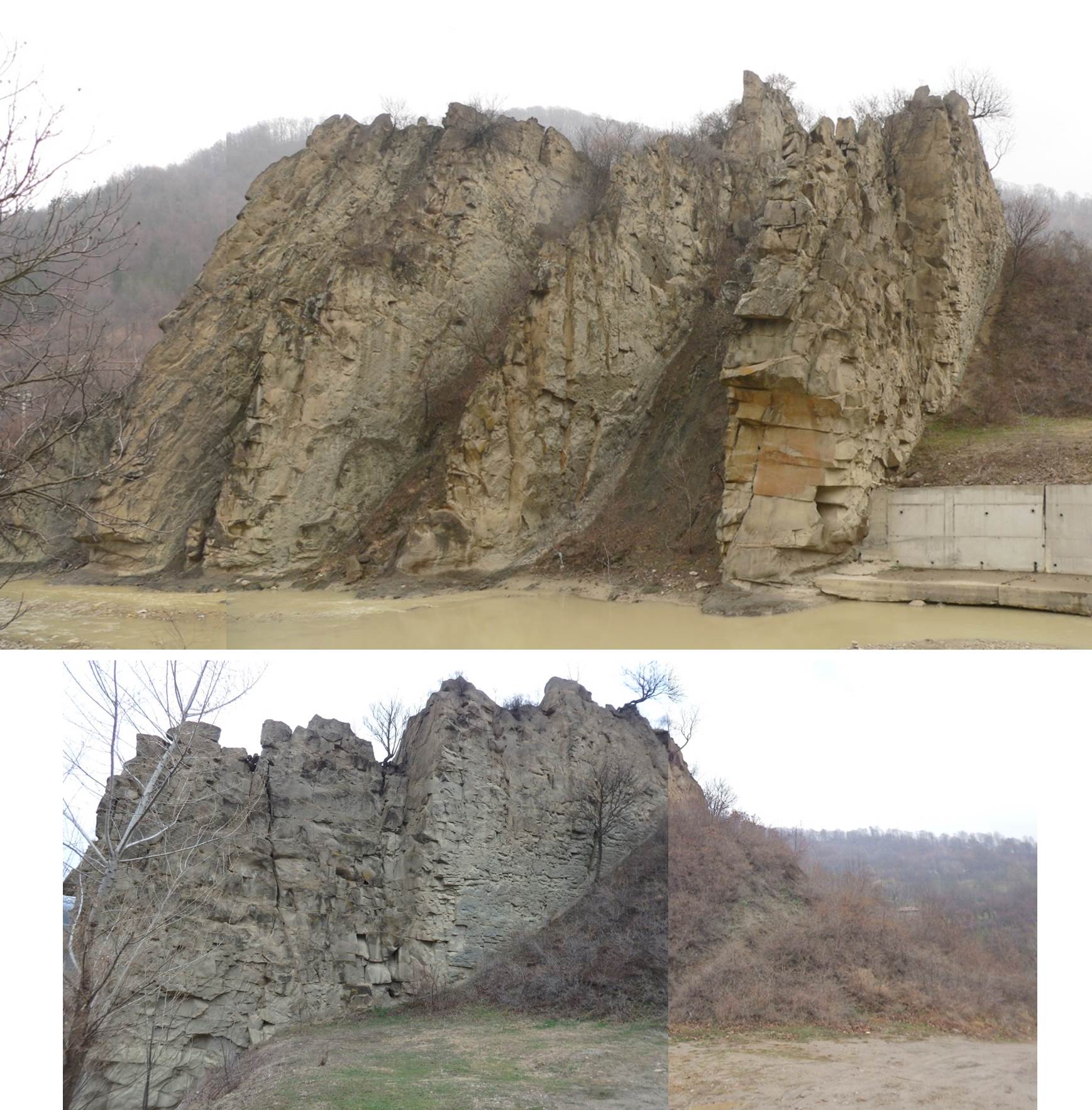 La confluența Milcovului cu Reghiu, Dealul Scruntaru și-a întins un picior în fața lor, pe care Milcovul l-a ros până la … os !