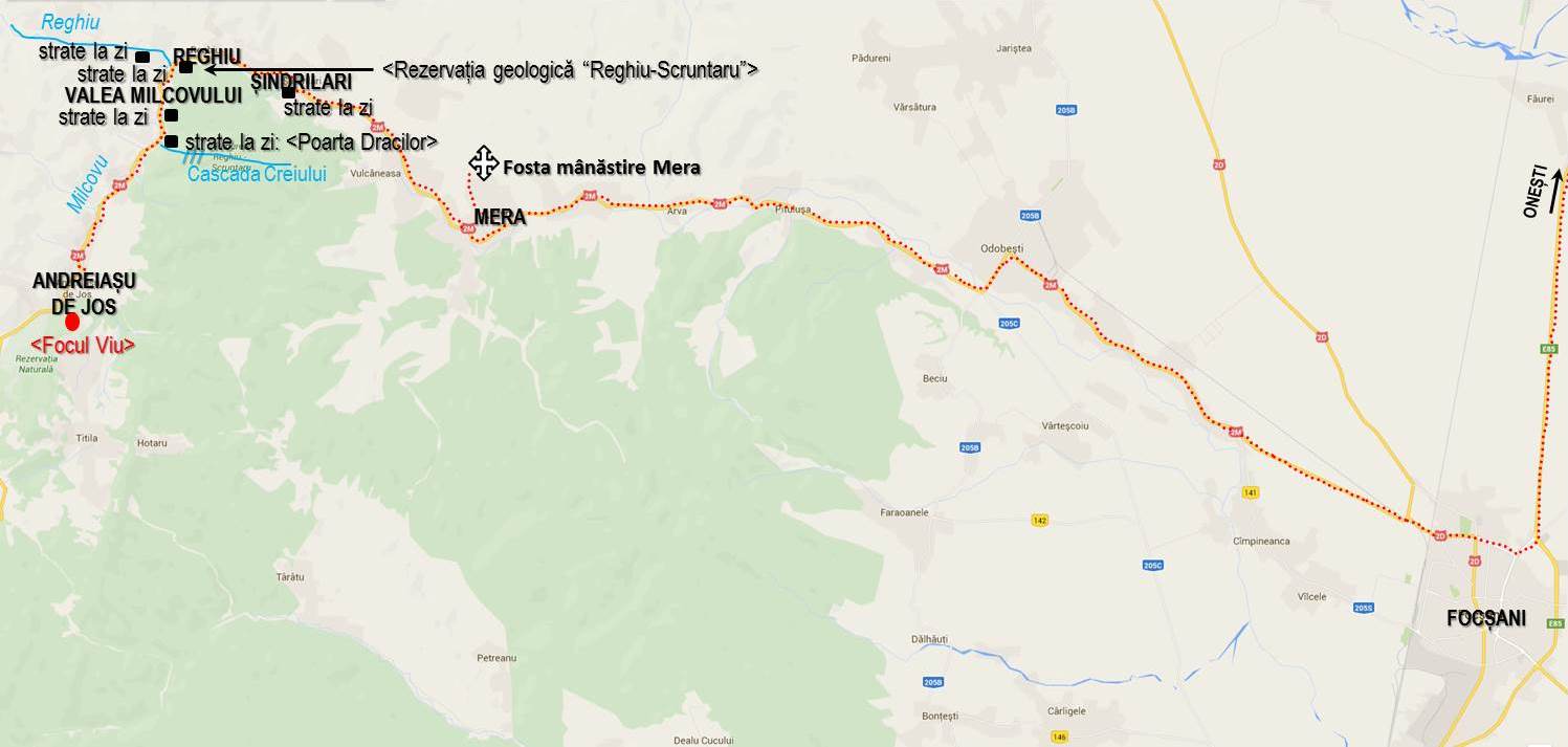 Din păcate, am uitat de … rănile … geologice făcute și de Reghiu versantului său drept – chiar înainte de a se uni cu Milcovul -, iar faleza spectaculoasă de la intrarea în satul Valea Milcovului am … remarcat-o din viteza mașinii, cu … promisiunea (neonorată) de a opri la întoarcere !
