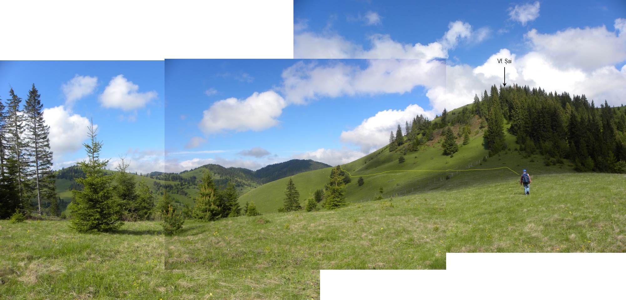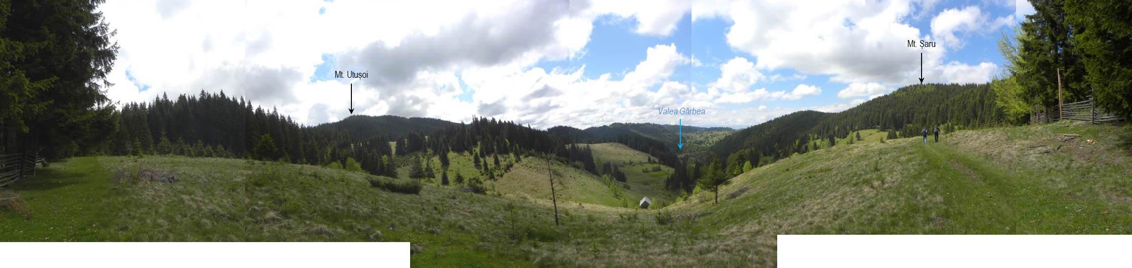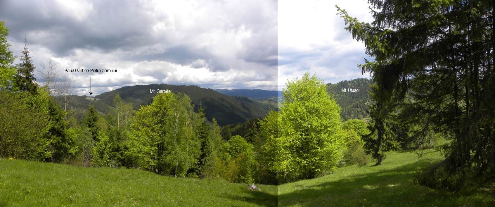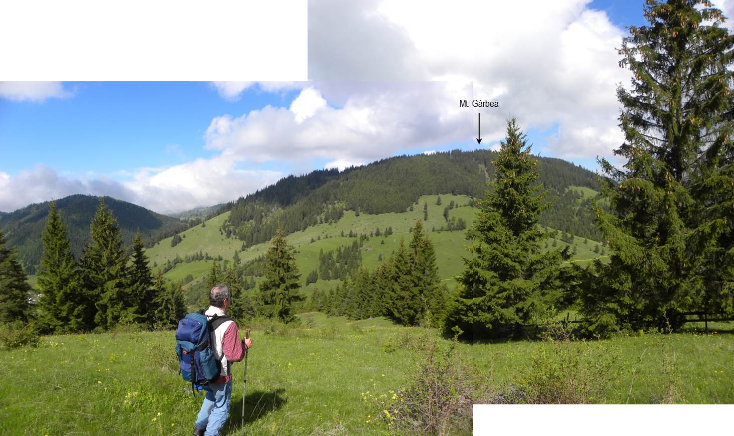 Traversăm culmea Muntelui Gârbea prin șaua dintre el și Piatra Corbului; …