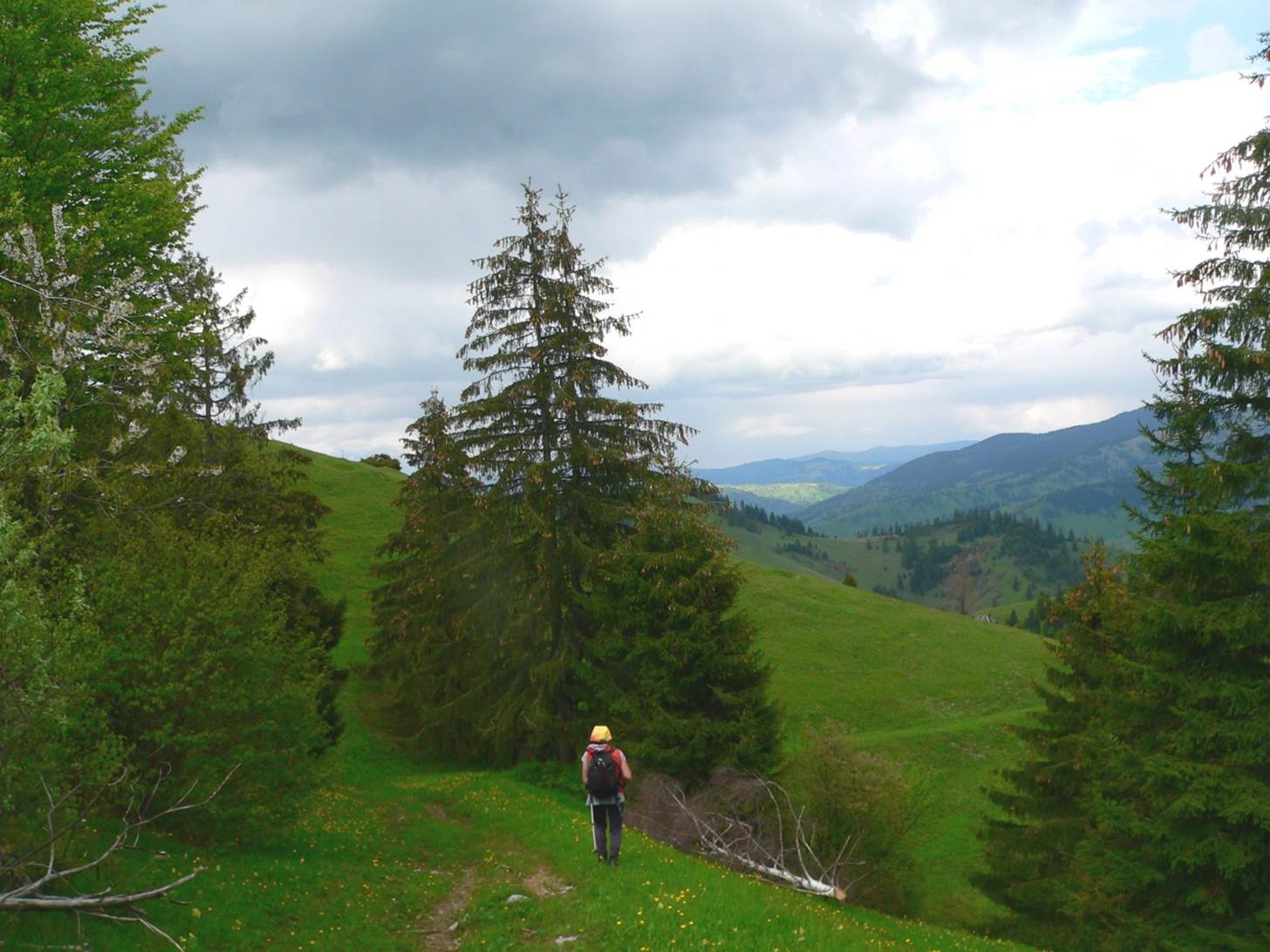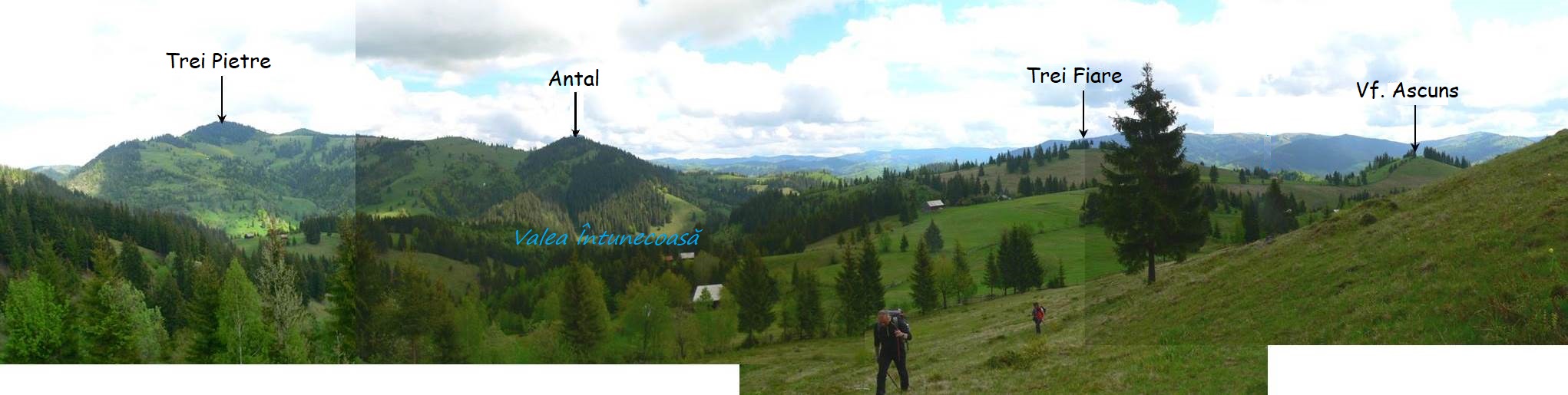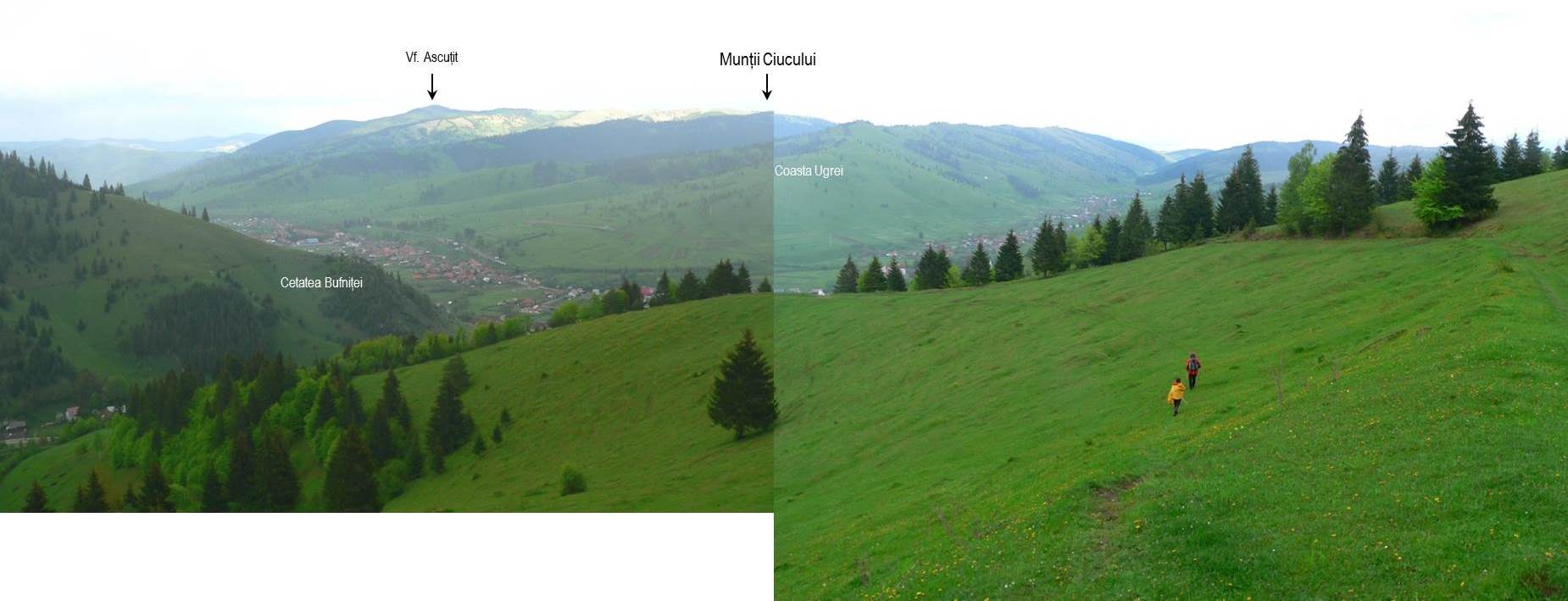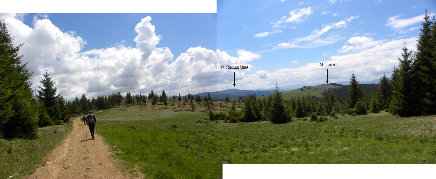 Traversăm culmea Muntelui Gârbea prin șaua dintre el și Piatra Corbului; …
