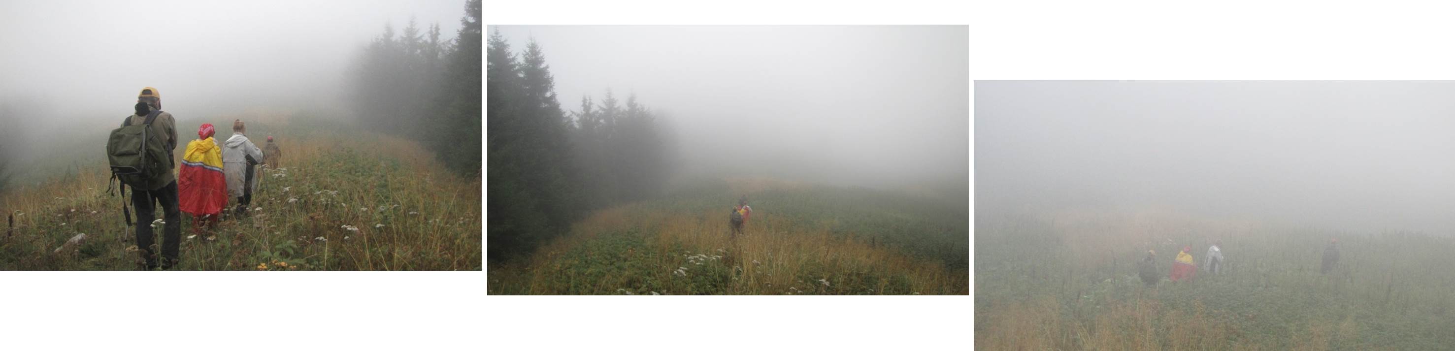 În Poiana cu Container ceața ne ajunge din urmă, aducând cu ea și o … bură de ploaie! Luăm … act de noua situație …