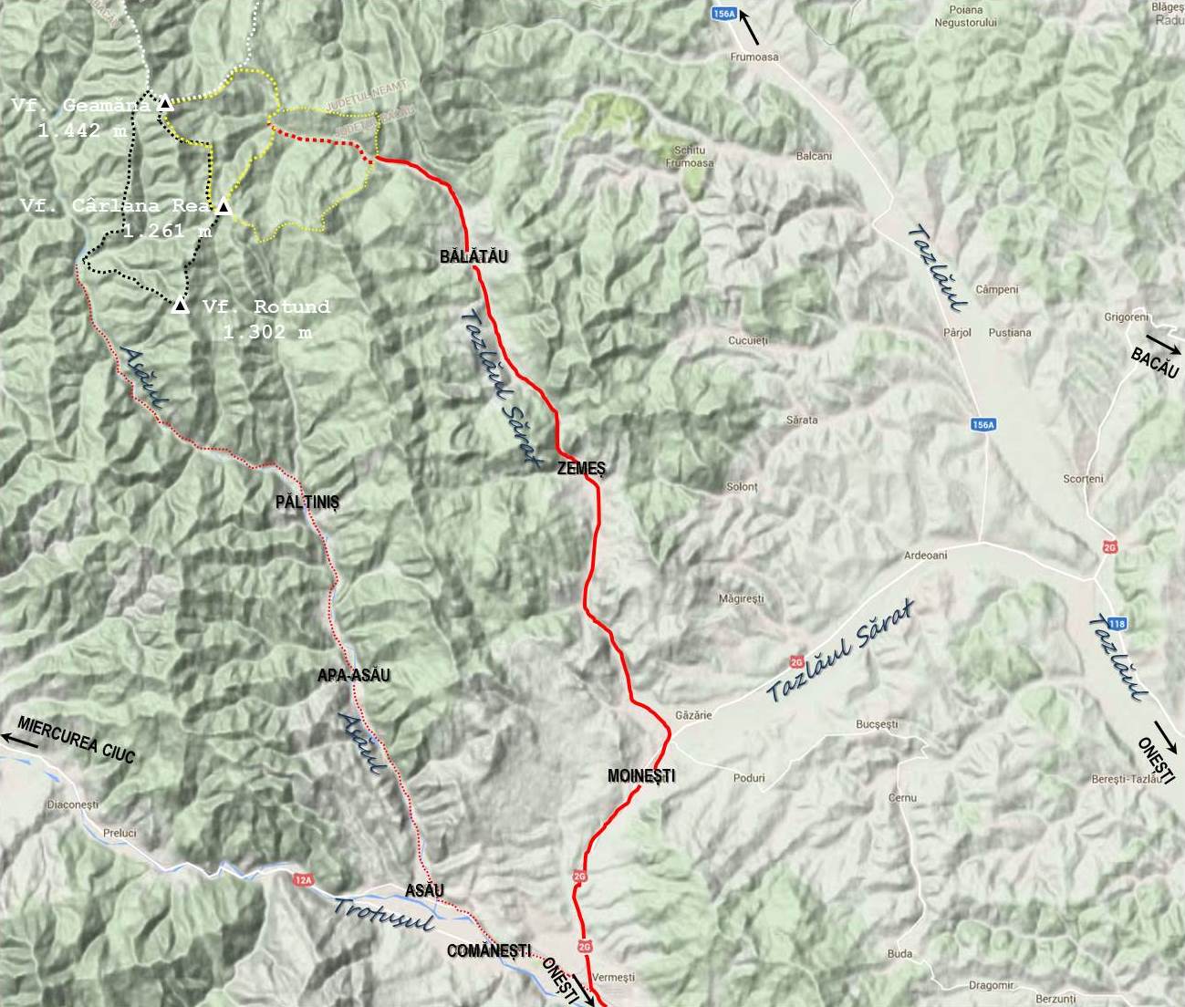 Lăsăm mașina în capătul Bălătăului, cu gândul că ne vom întoarce pe culmea versantului stâng al Tazlăului Sărat, așa că, până la intrarea propriu-zisă în traseu avem de mers vreo 2,5 km pe drumul forestier de pe valea râului.