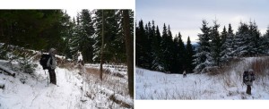 Coborâm repede, îndemnați de pantă și de ora târzie, pe direcția indicată de borna II 197, dar mai ales de “H”-urile hotarului silvic !