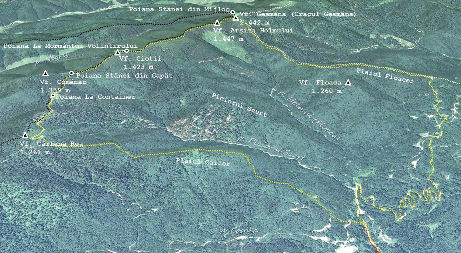 Suim apoi, pieziș, până pe coama Comănacului, …