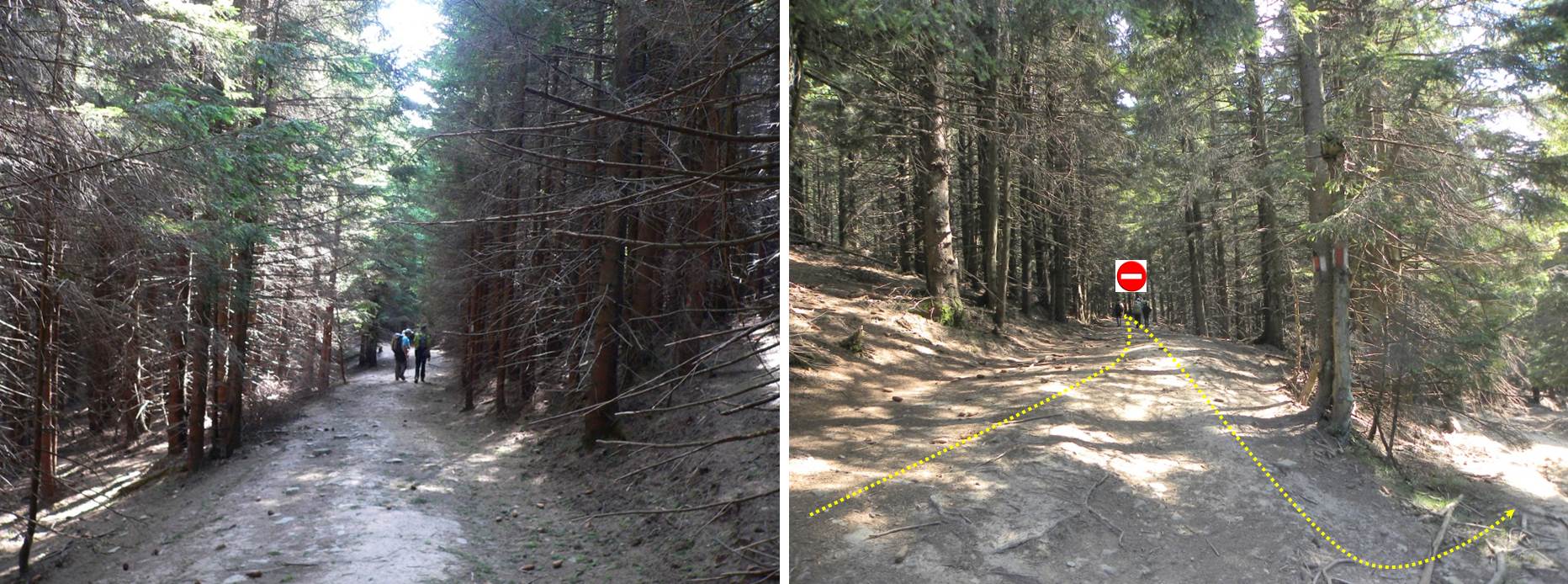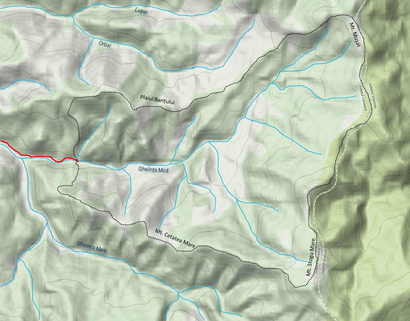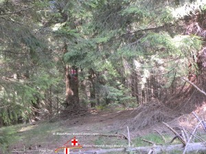 [Banda roșie încă lipsește fizic, crucea roșie este un marcaj nou, inexistent pe hărțile aflate în uz ale Munților Vrancei !]