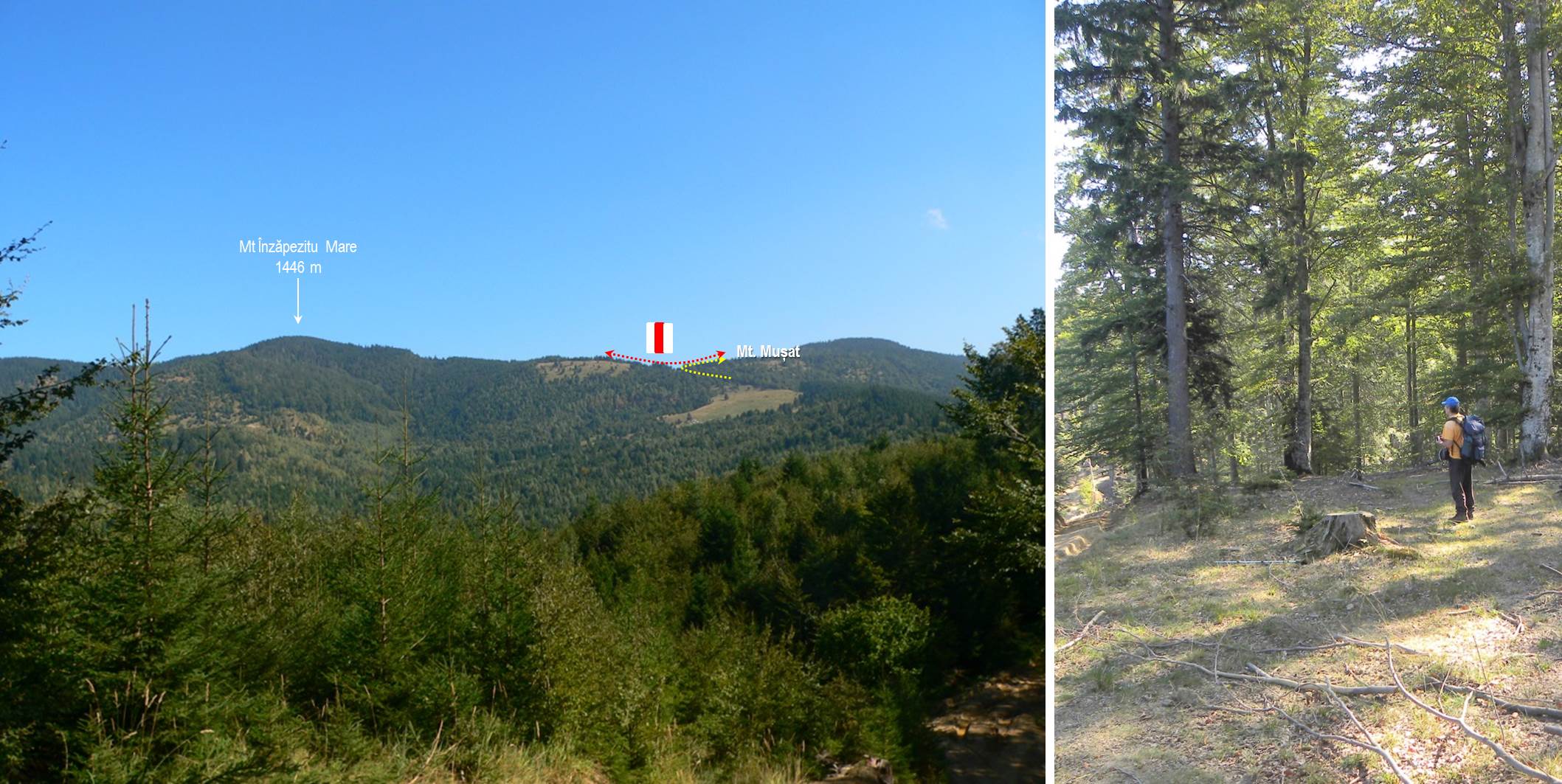 Din șa țintim, deocamdată cu privirea, Curmătura, unde vom atinge culmea principală a Munților Vrancei. Marcajul turistic nu a mai fost însă de mult împrospătat; de pe Muntele Mușat până în Pasul Oituz rar mai poate fi văzut vreun semn !