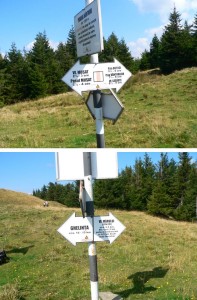 Informațiile pe care le găsim pe plăcile (de plastic) prinse de stâlpul (de lemn) plantat în marginea poienii sunt cel puțin … fanteziste, dacă nu chiar … dăunătoare: