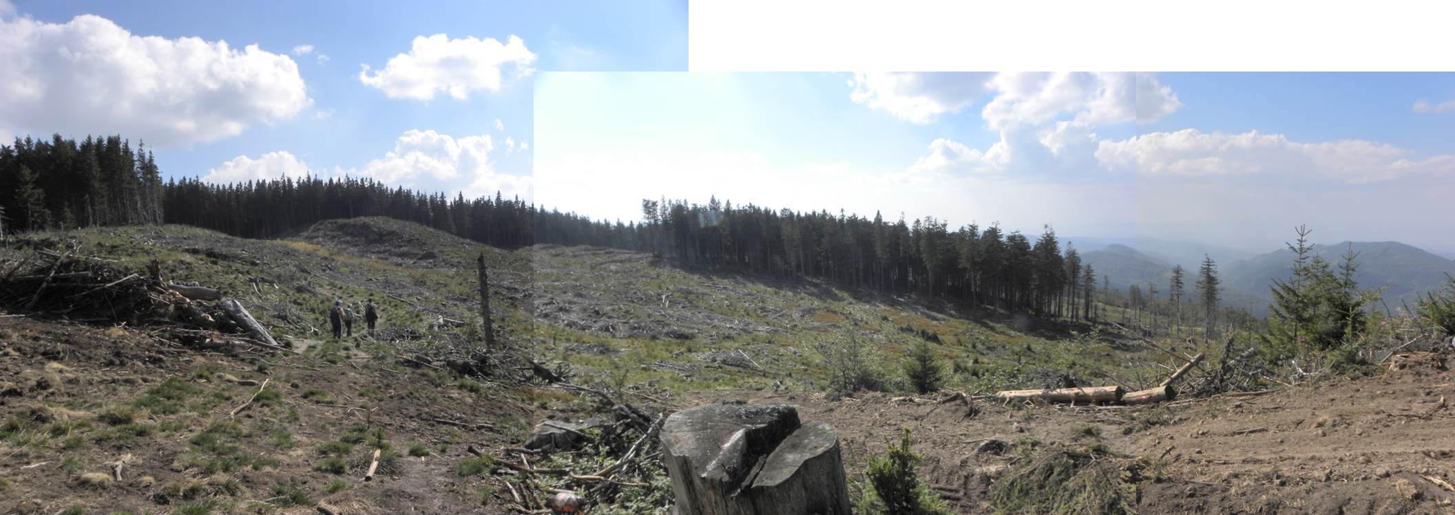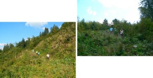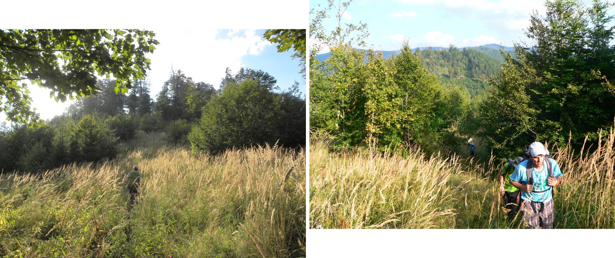 Trecem într-o nouă poiană rămasă de pe urma unei tăieri rase, cu vegetația… cât casa, de nu se vede nici … ursu’ !