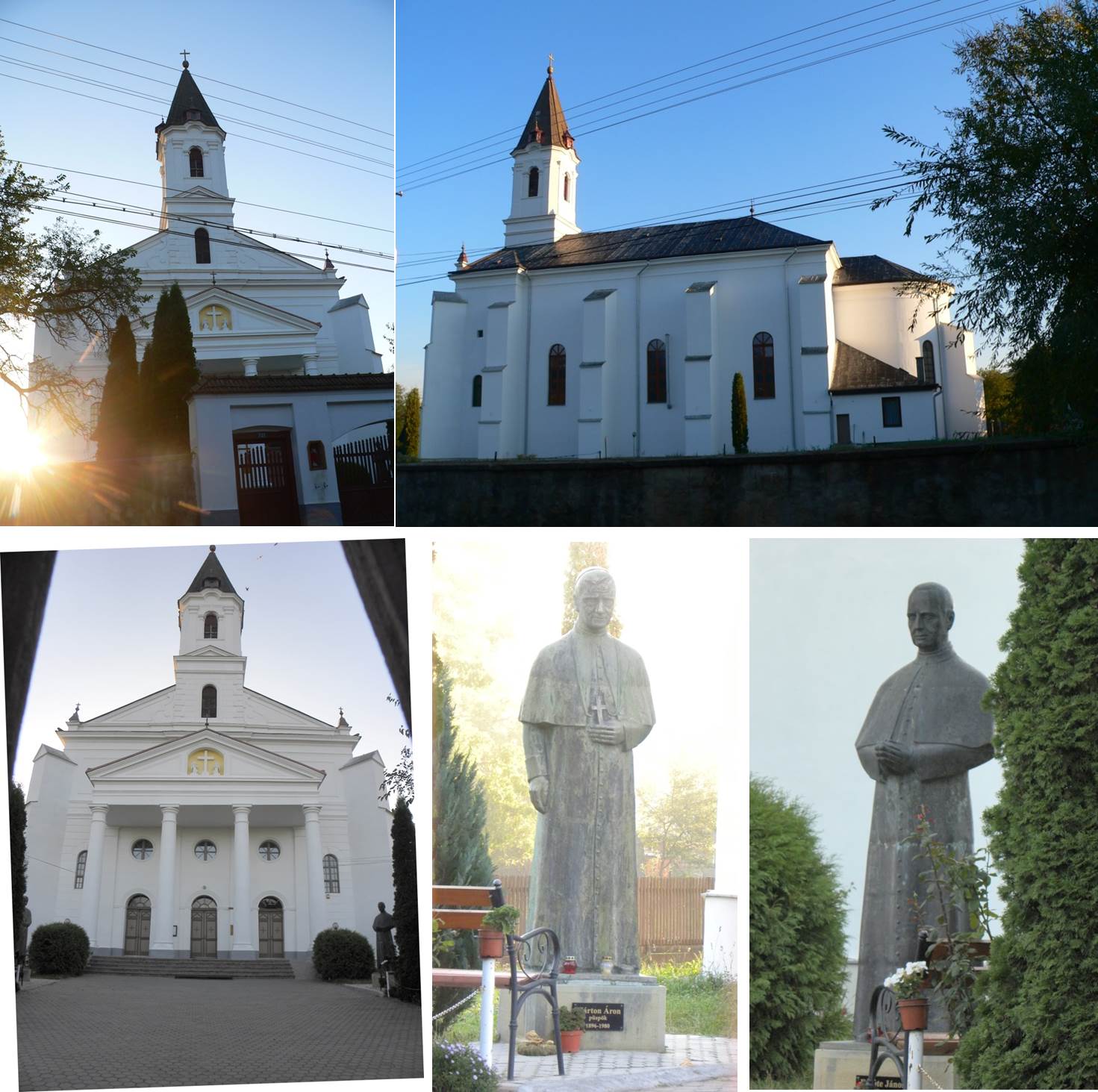 De la intersecția descrisă anterior se vede turla bisericii parohiale romano-catolice, construită între 1898 și 1903.