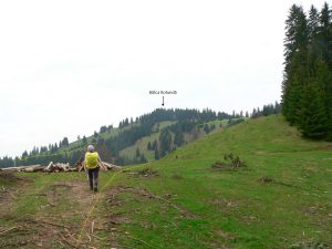 … până într-o șa joasă, poienită, ce marchează punctul de întoarcere a direcției principale, dinspre vest – cea de până aici – spre nord, pe deasupra izvoarelor Asodului Mare. [11.00]